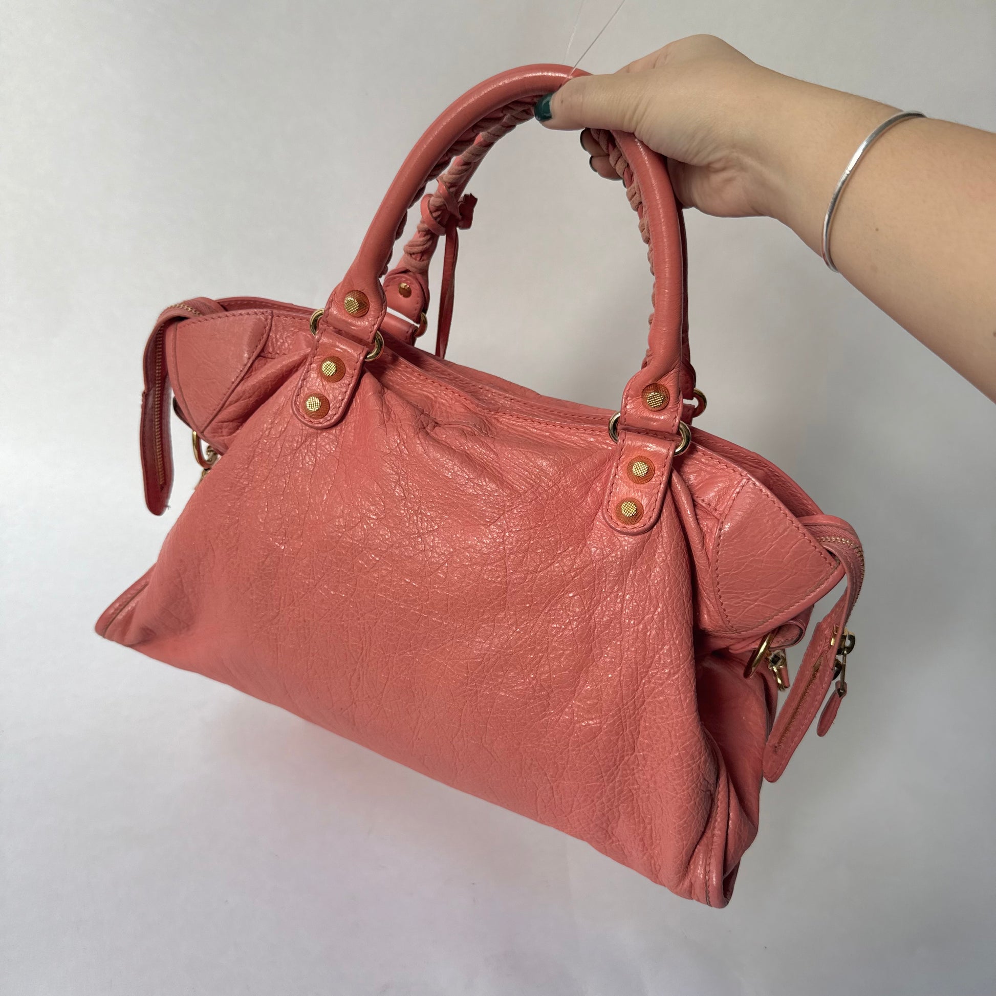 Balenciaga Coral Pink Leather Giant City Bag