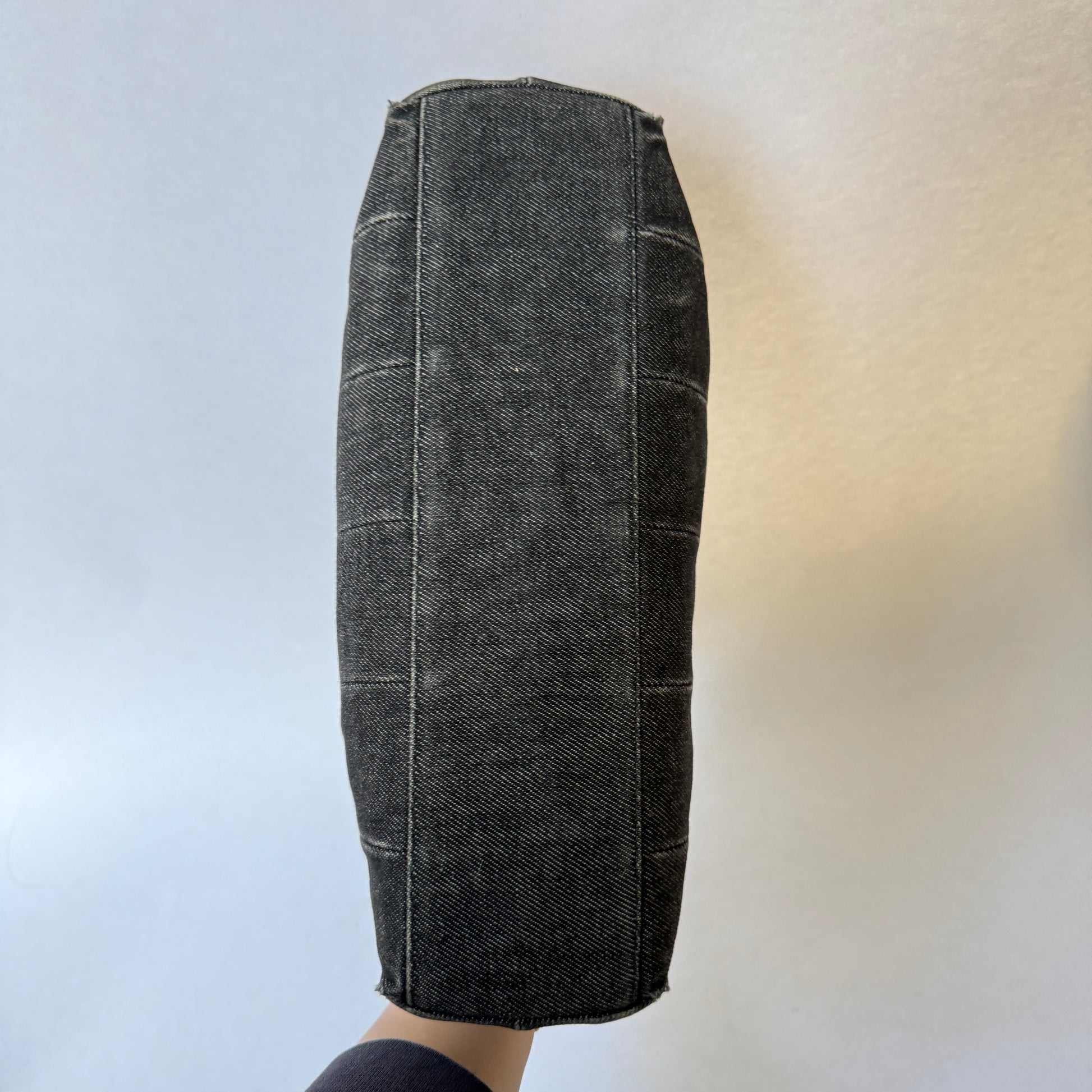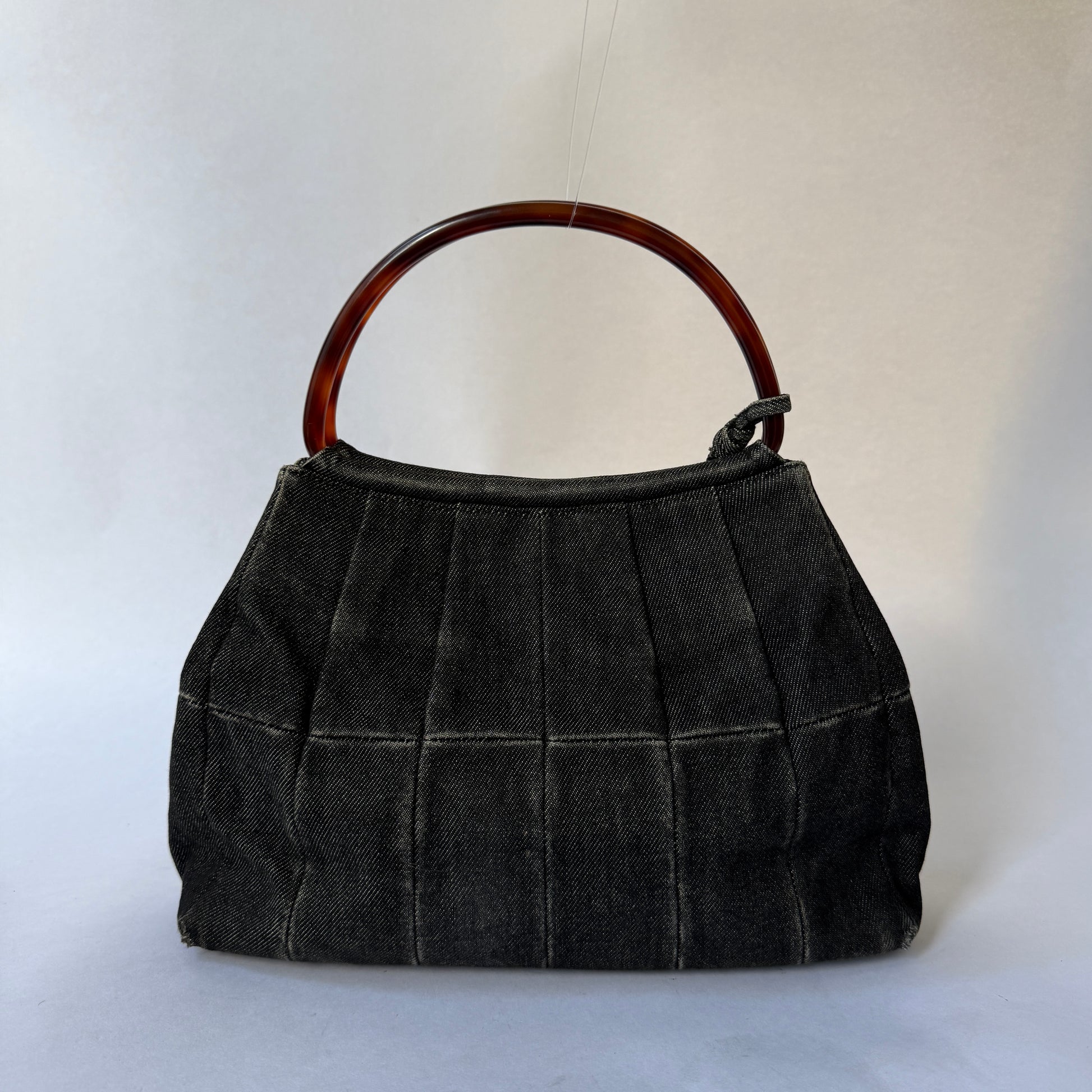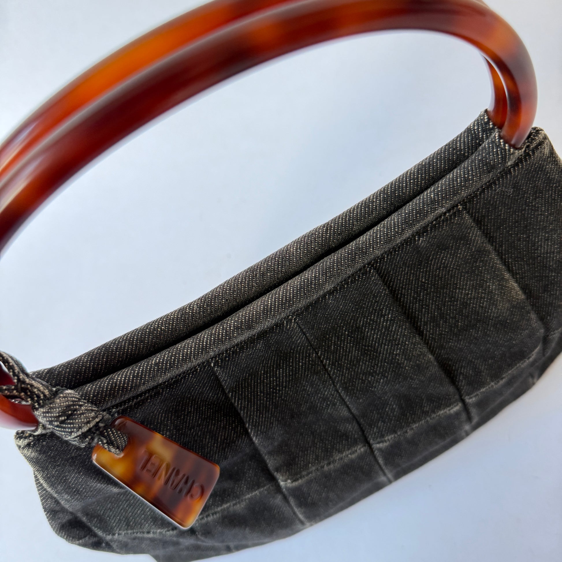 Chanel Black Denim Pleated Tortoise Shell Handle Tote Bag