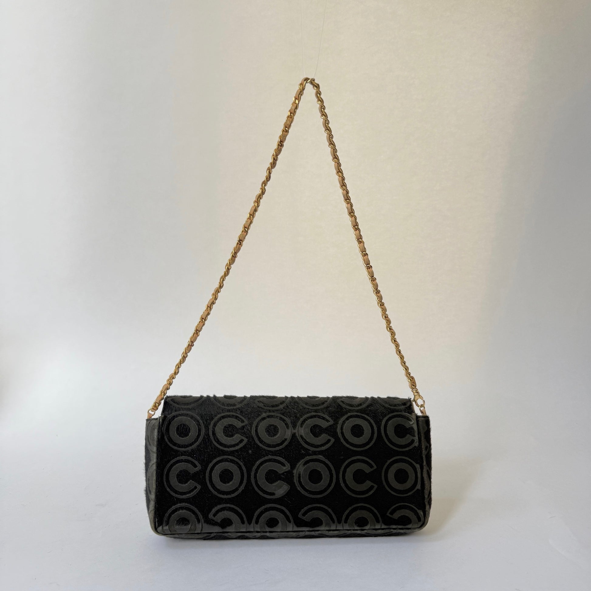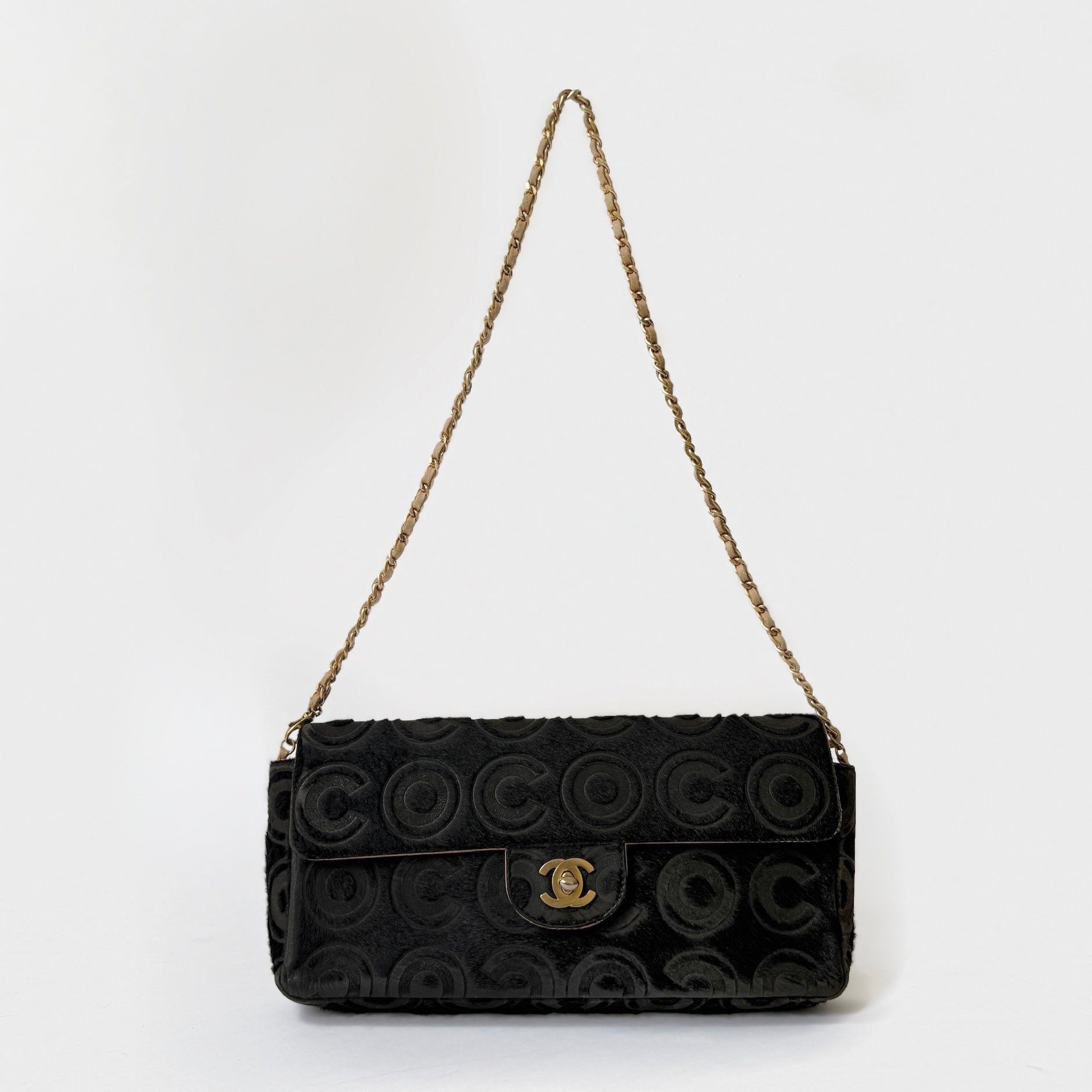 Chanel Black Pony Hair Coco Monogram East/West Flap