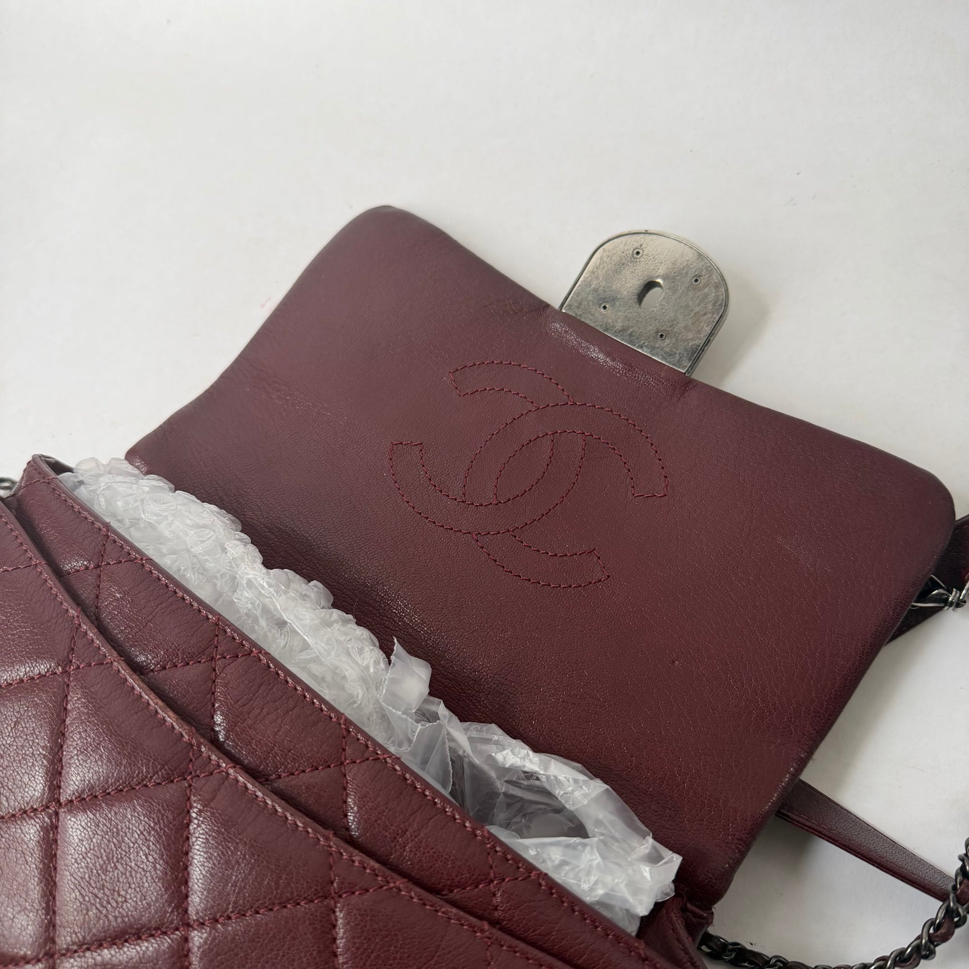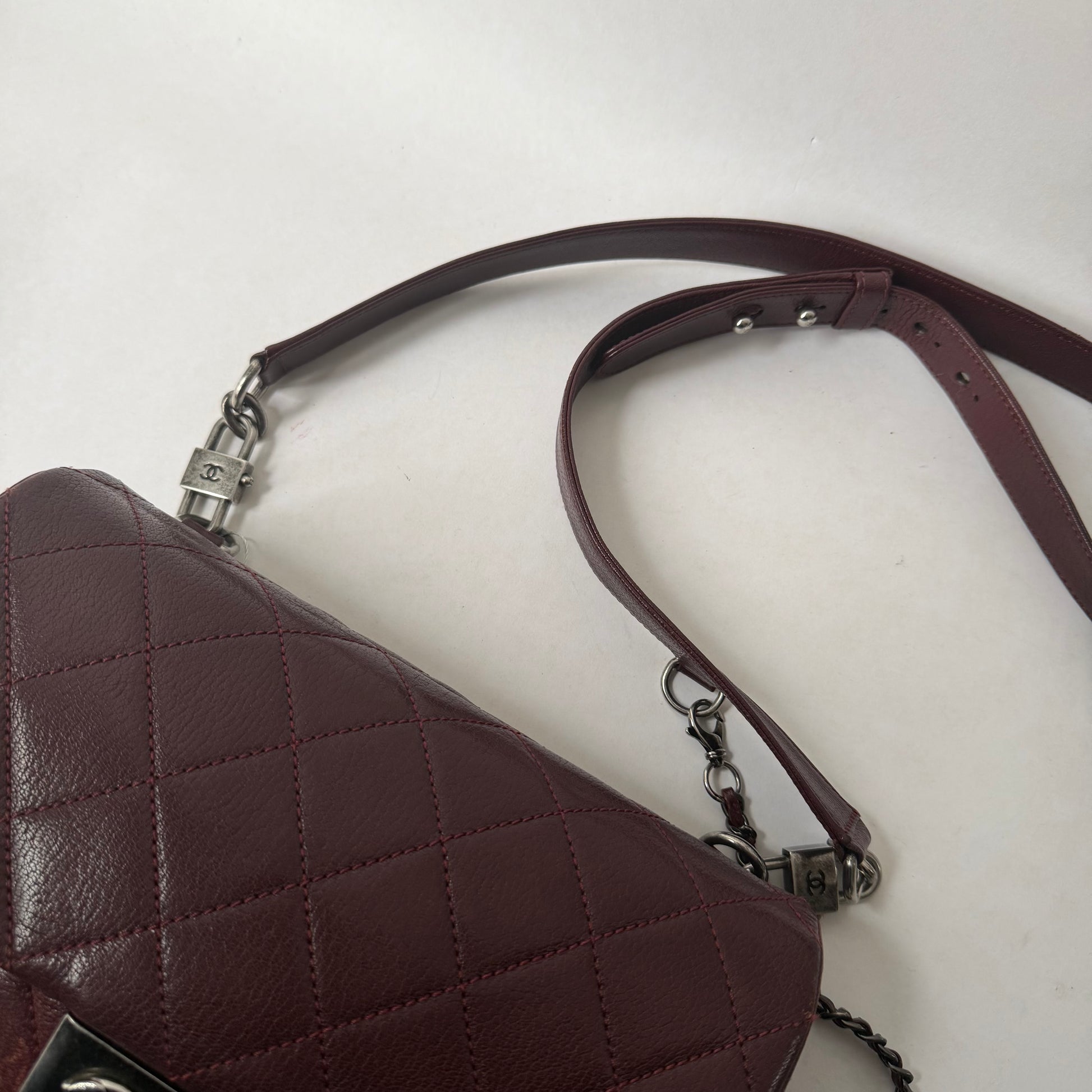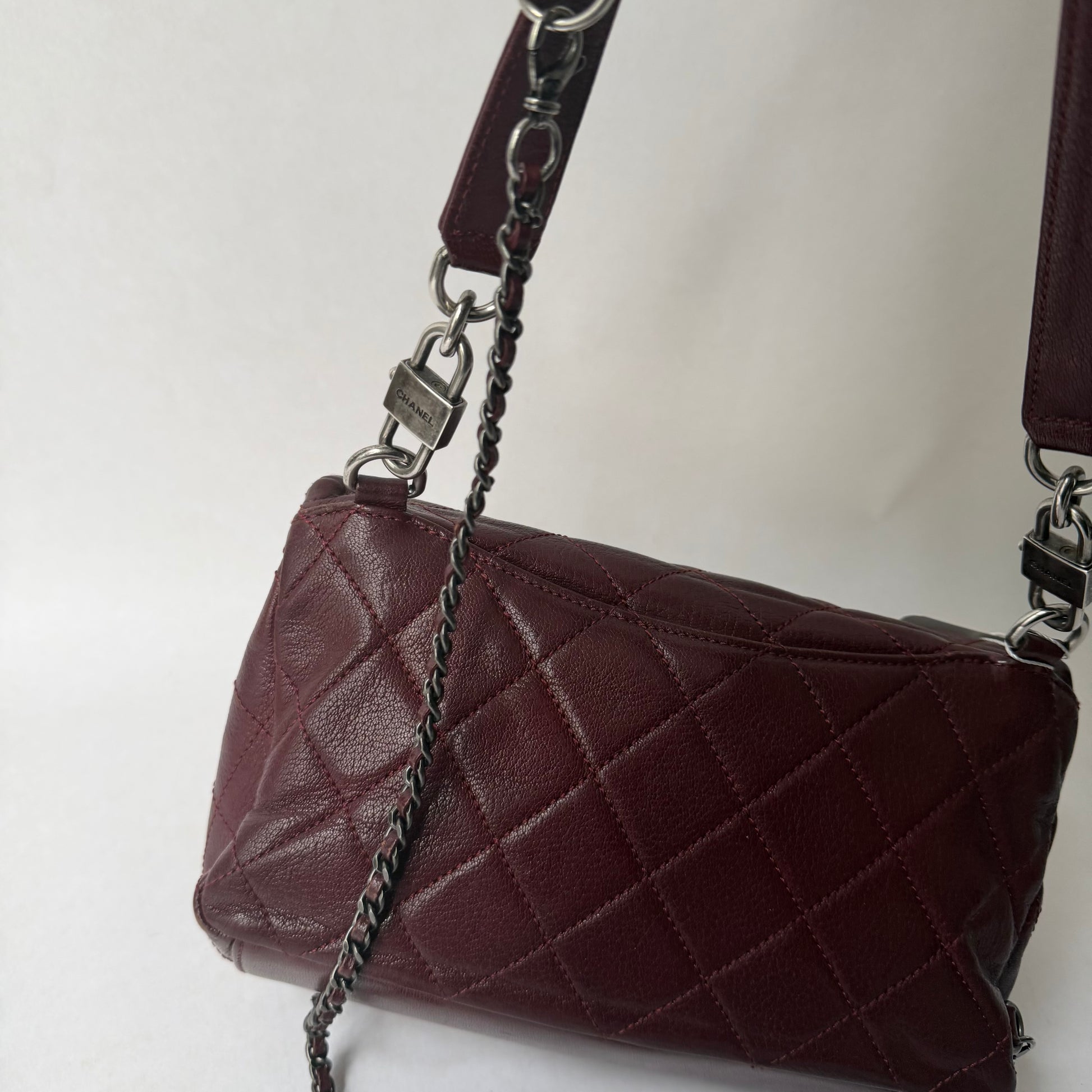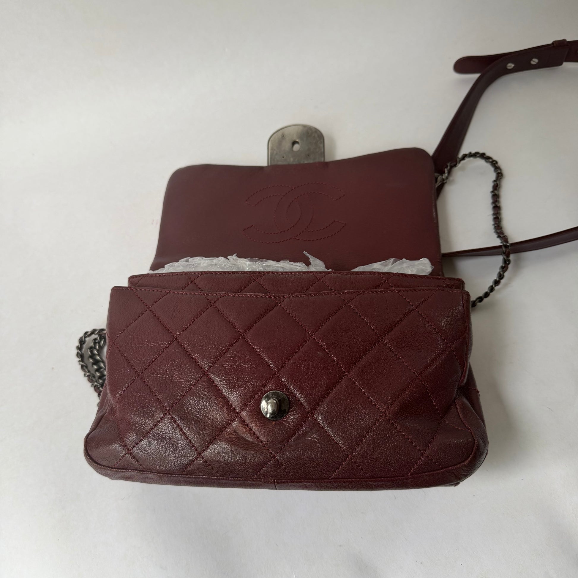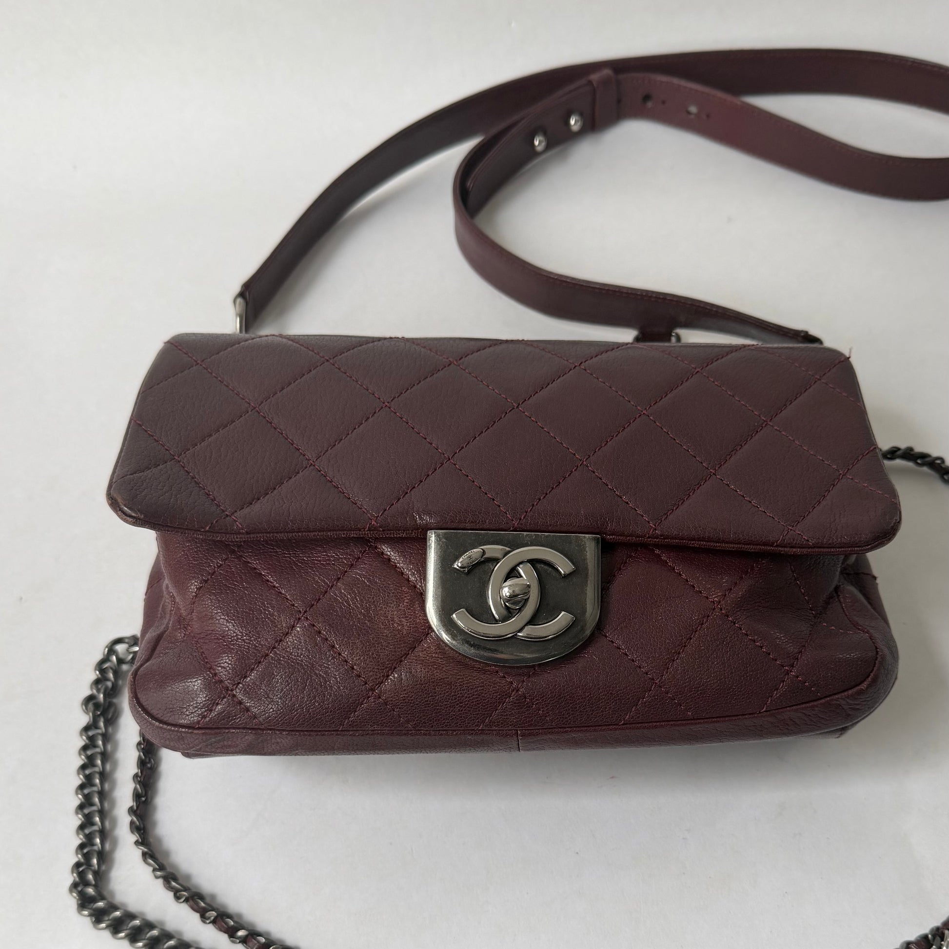 RARE Chanel Burgundy Leather Double Carry Waist Chain Flap