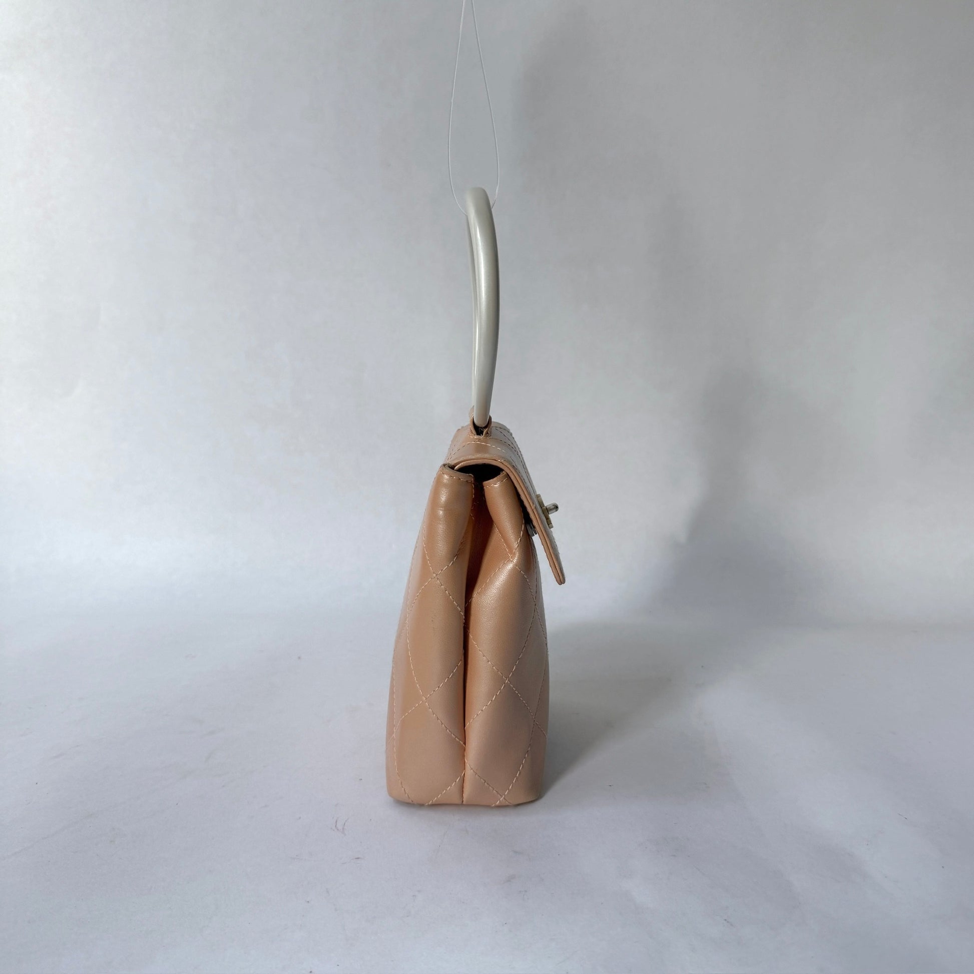 Chanel Pink Lambskin Leather Quilted Ring Top Handle Bag