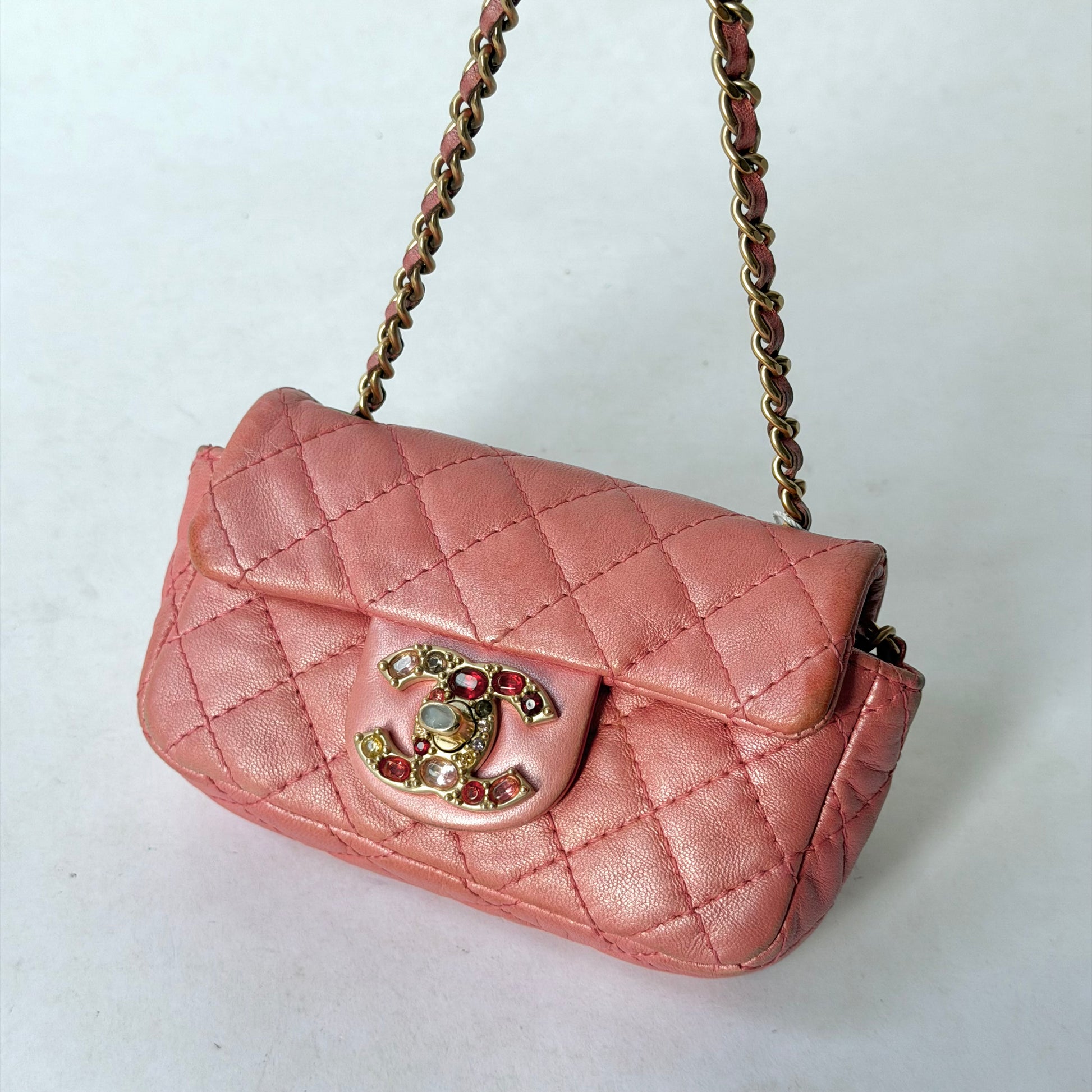 Chanel Pink Micro Mini Rhinestone Flap Crossbody Bag