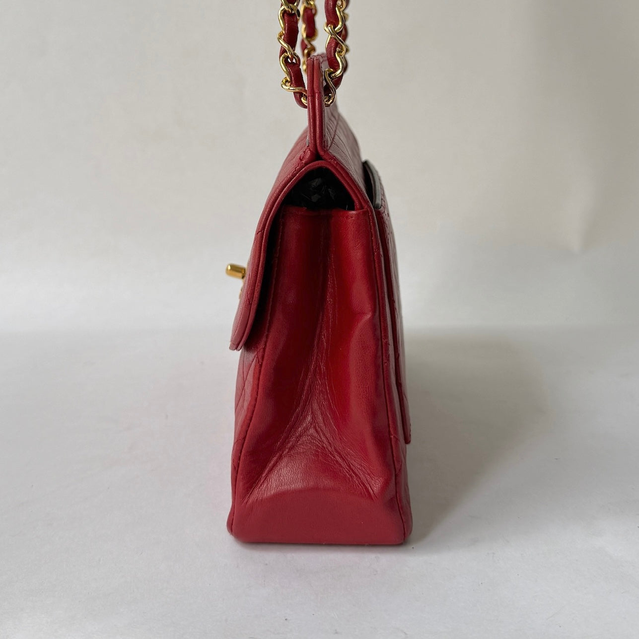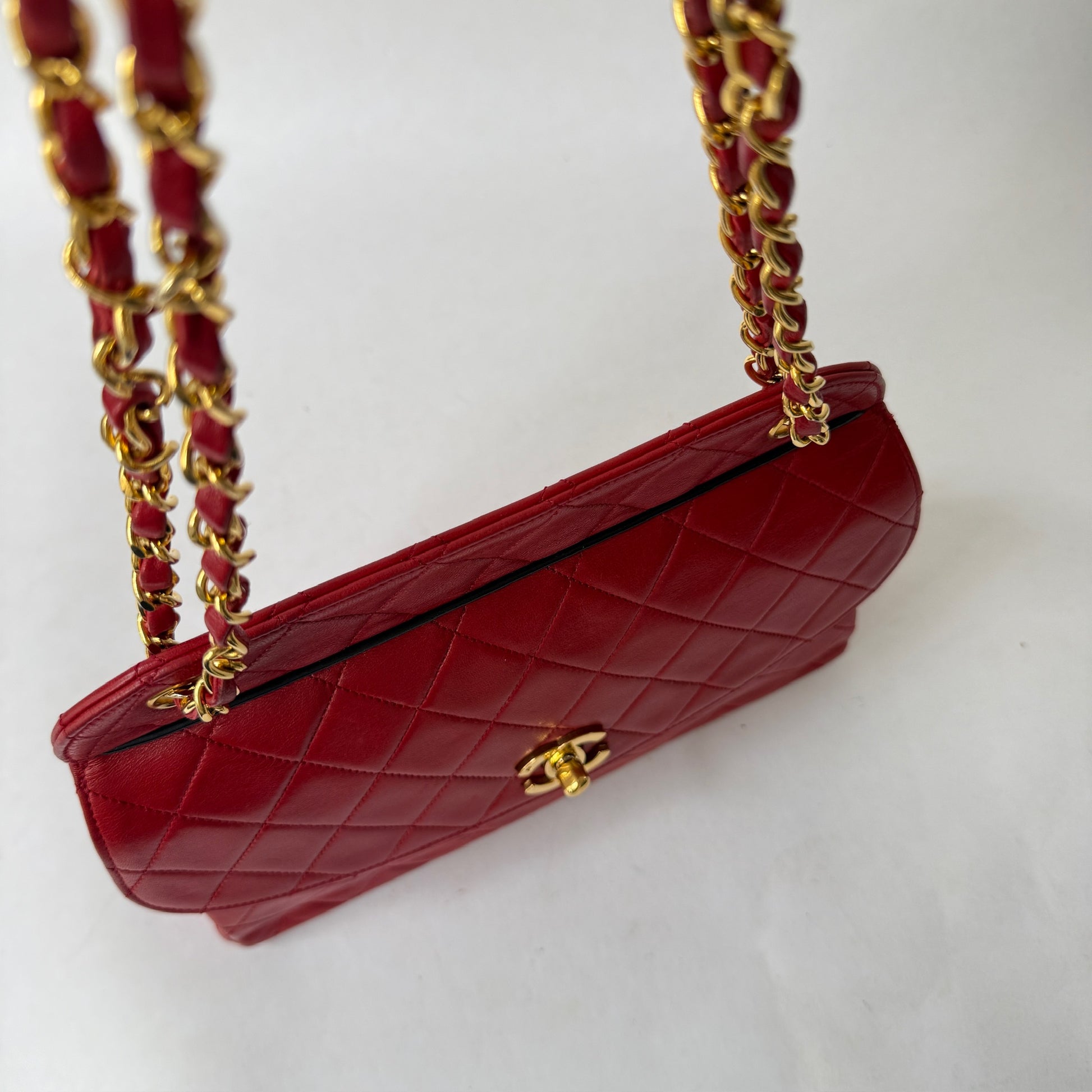 Chanel Red Lambskin Quilted Front Flap Chain Shoulder Bag
