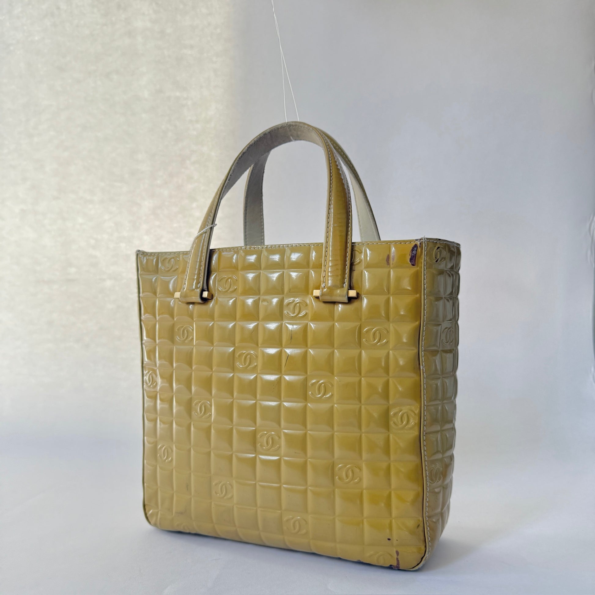 Chanel Yellow Patent Leather Chocolate Bar Tote Bag