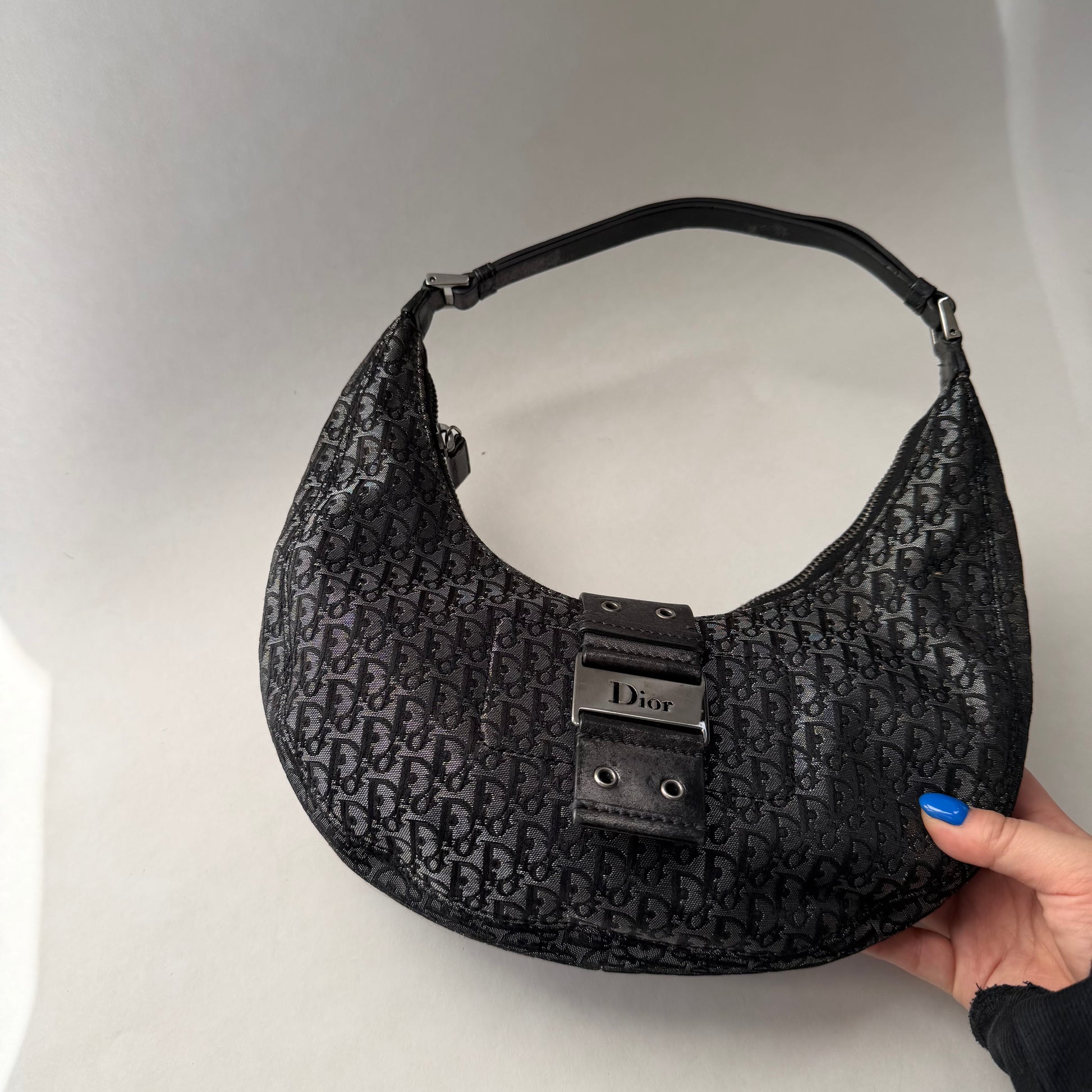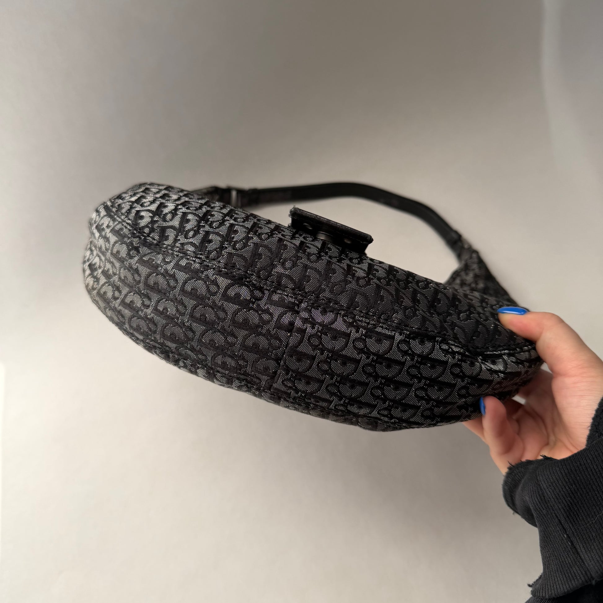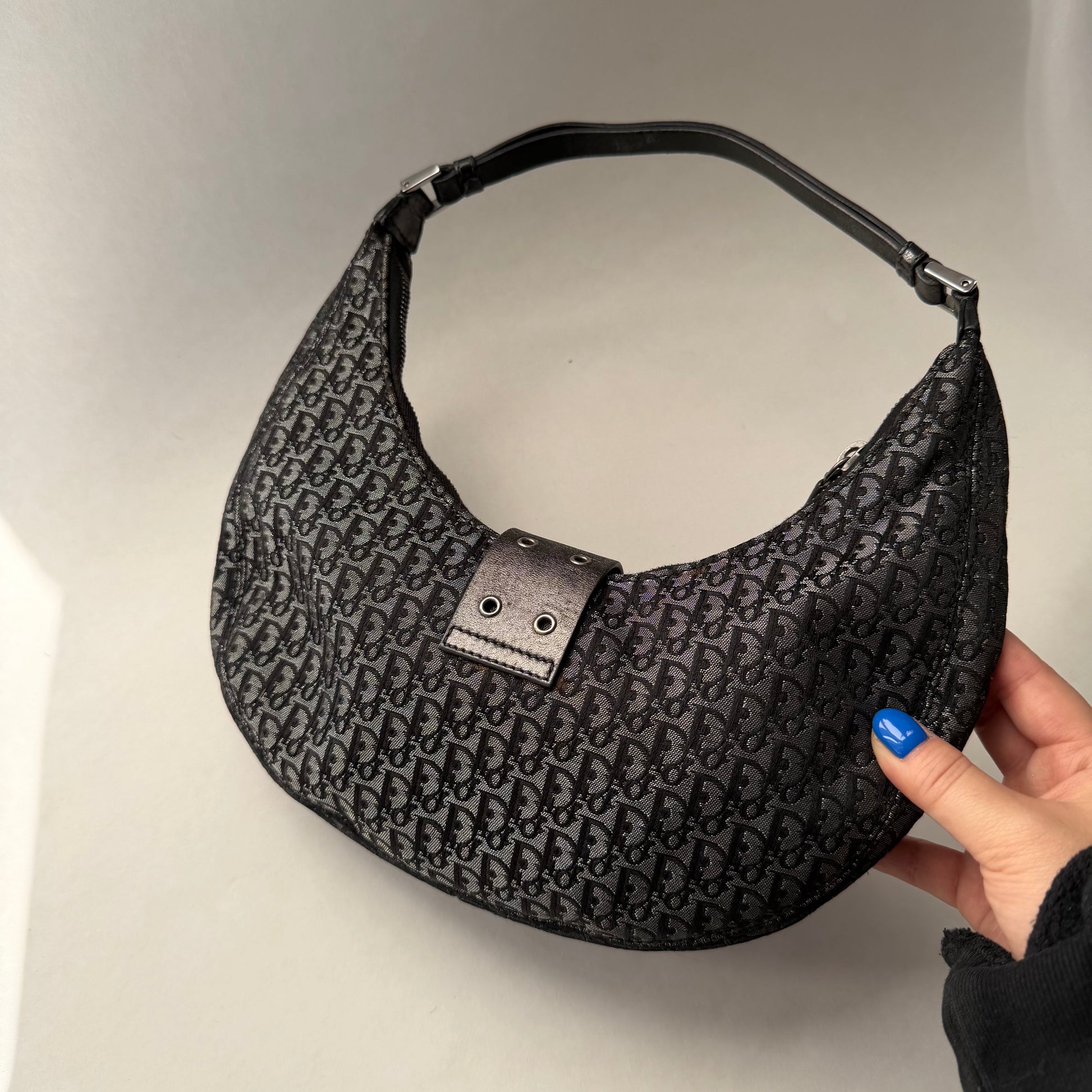 Christian Dior Black Trotter Canvas Street Chic Small Croissant Hobo Bag