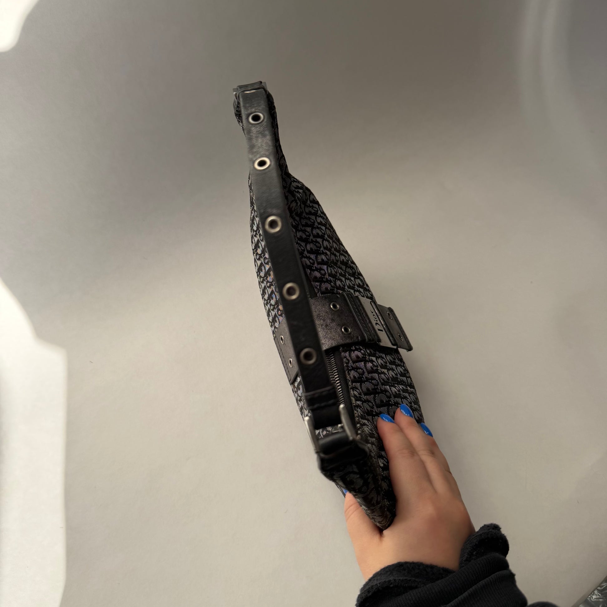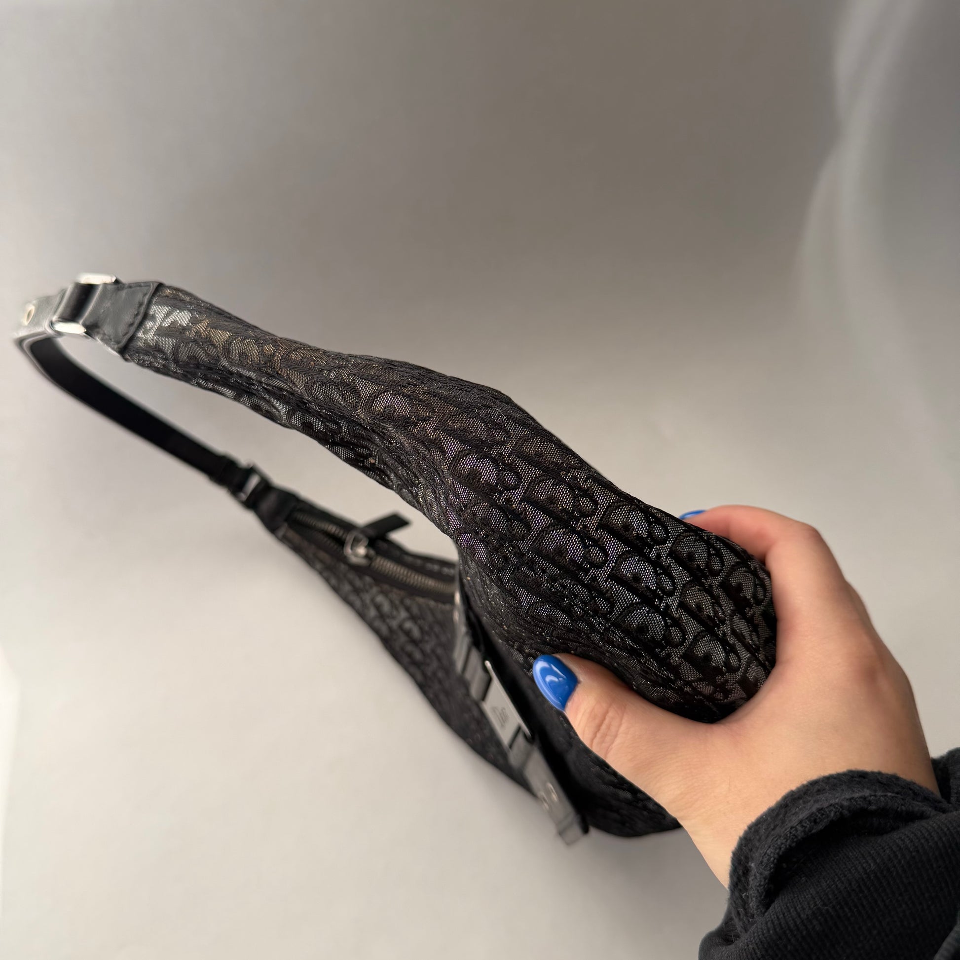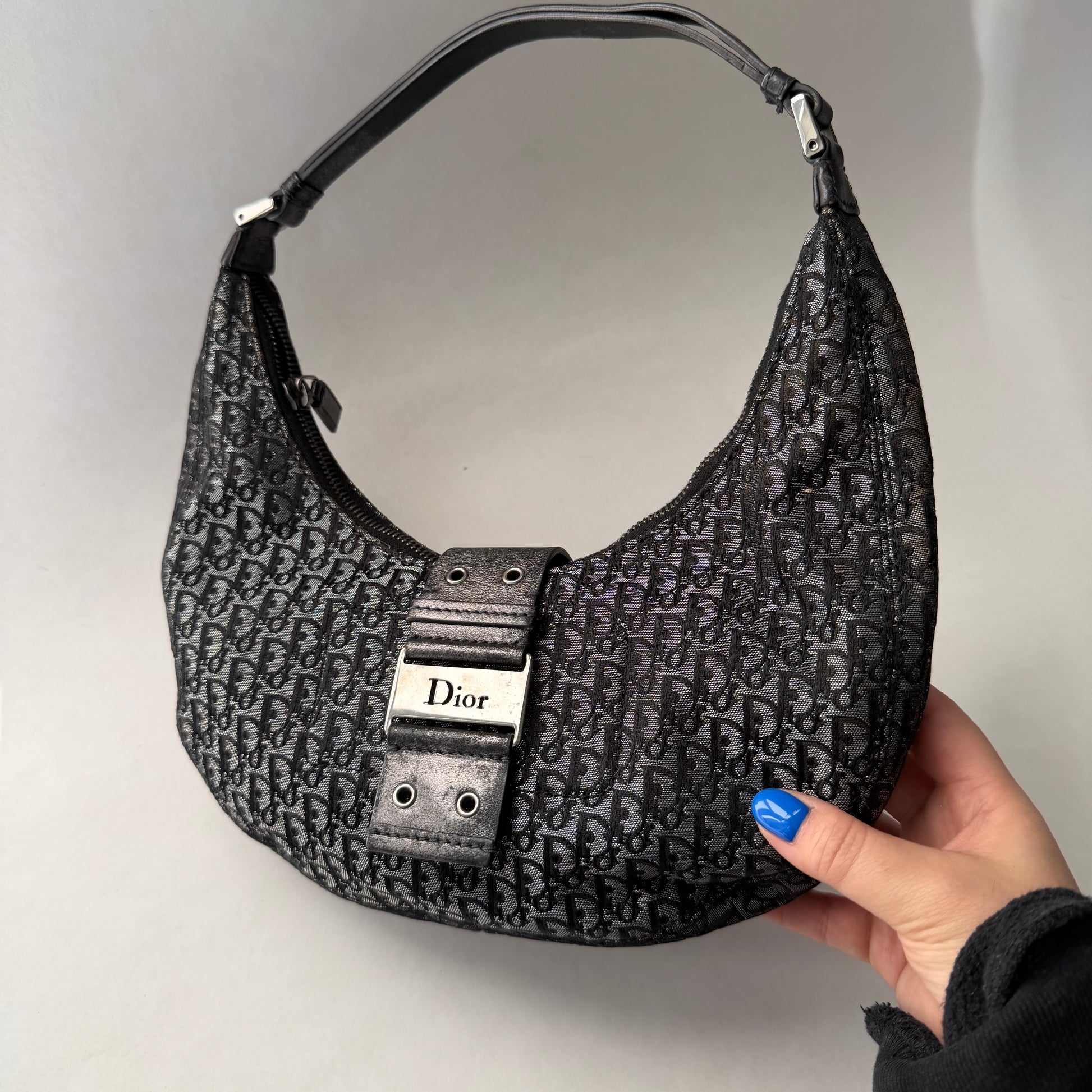 Christian Dior Black Trotter Canvas Street Chic Small Croissant Hobo Bag