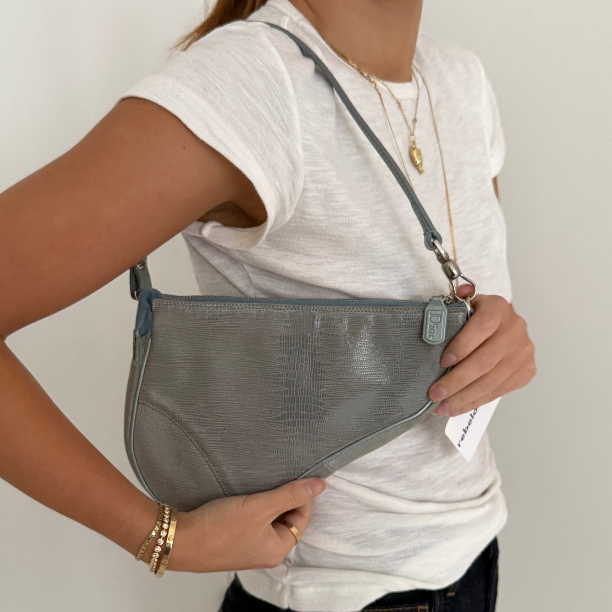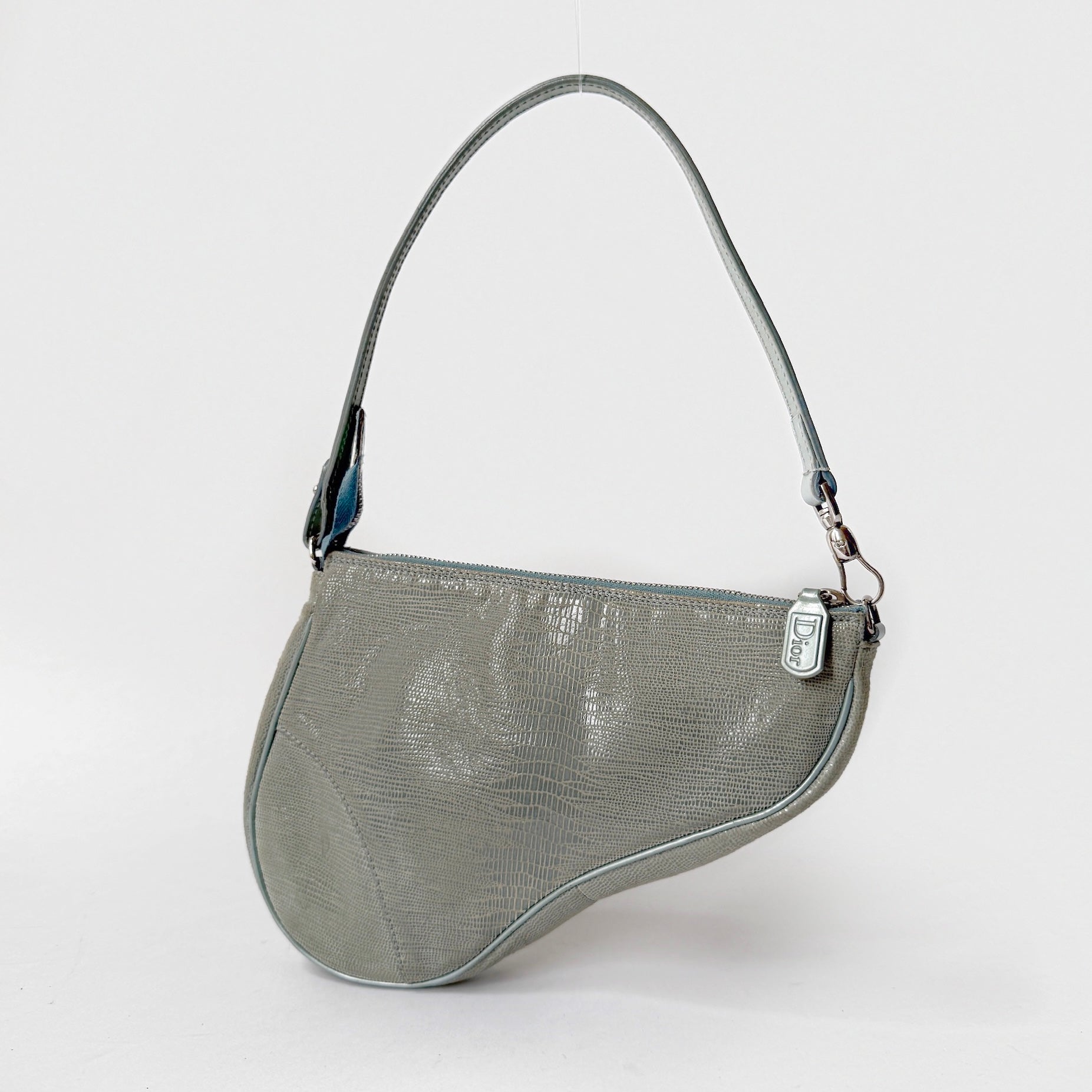 Christian Dior Blue Lizard Saddle Pochette Shoulder Bag