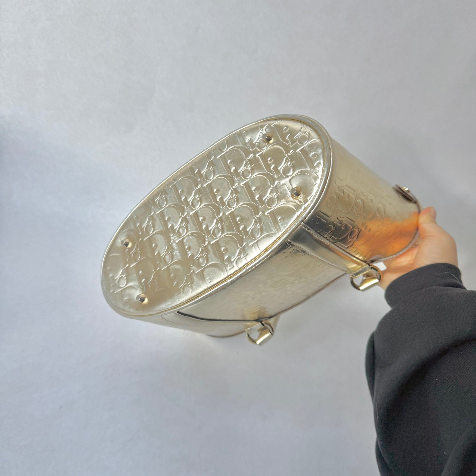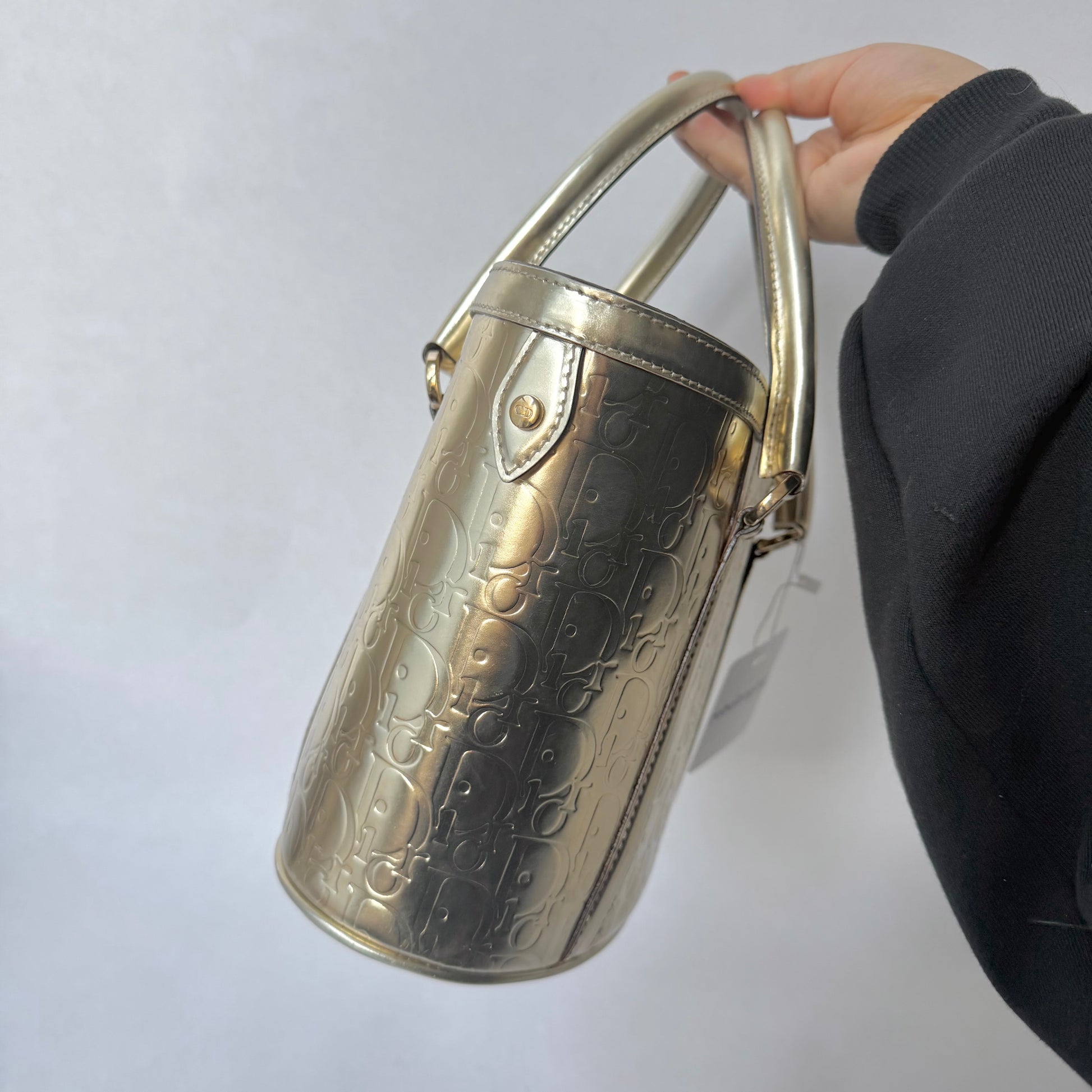 Christian Dior Gold Oblique Monogram Metallic Patent Leather Ultimate Tote