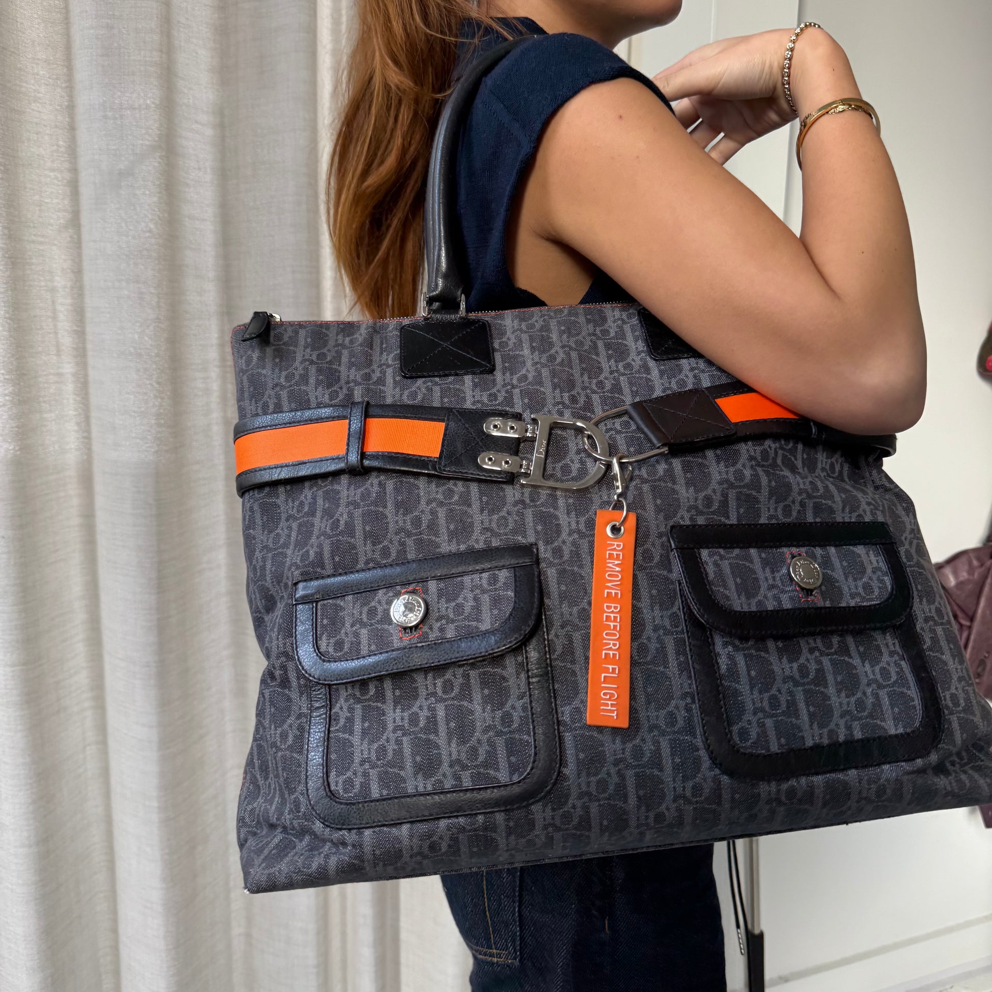 Christian Dior Large Navy Trotter Flight Travel Tote Bag