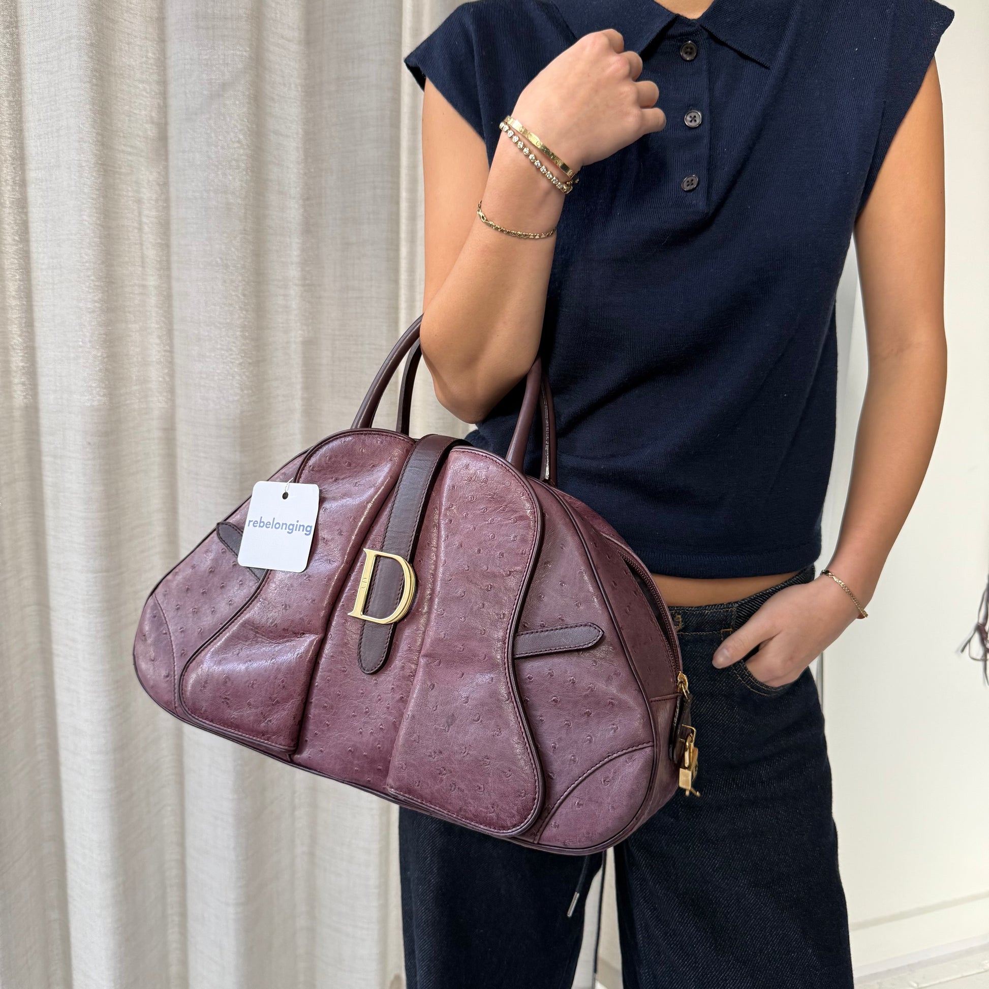 Christian Dior Large Purple Ostrich Double Saddle Bowler Bag