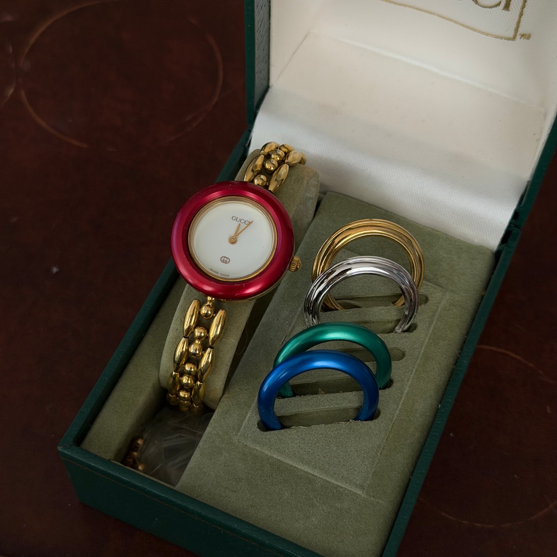 Gucci Gold Rice Link White Dial Bezel Watch w/ 5 Bezels