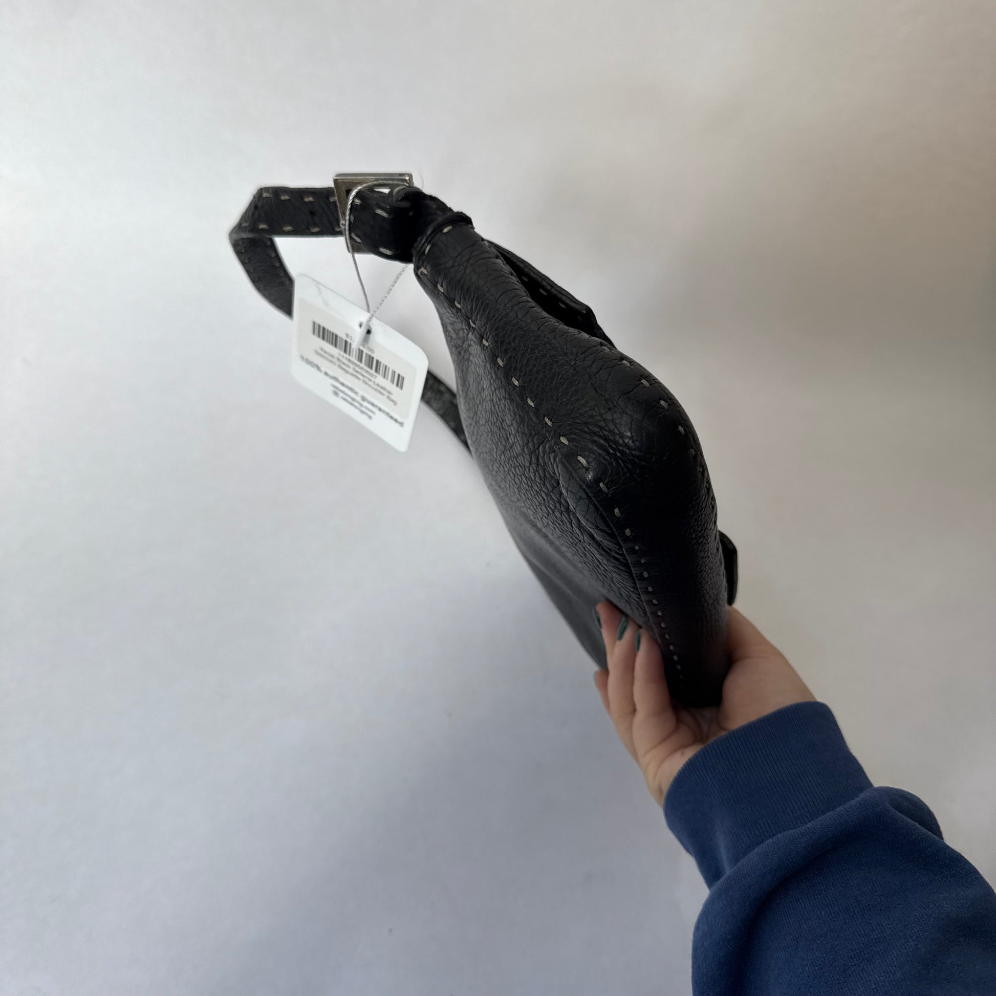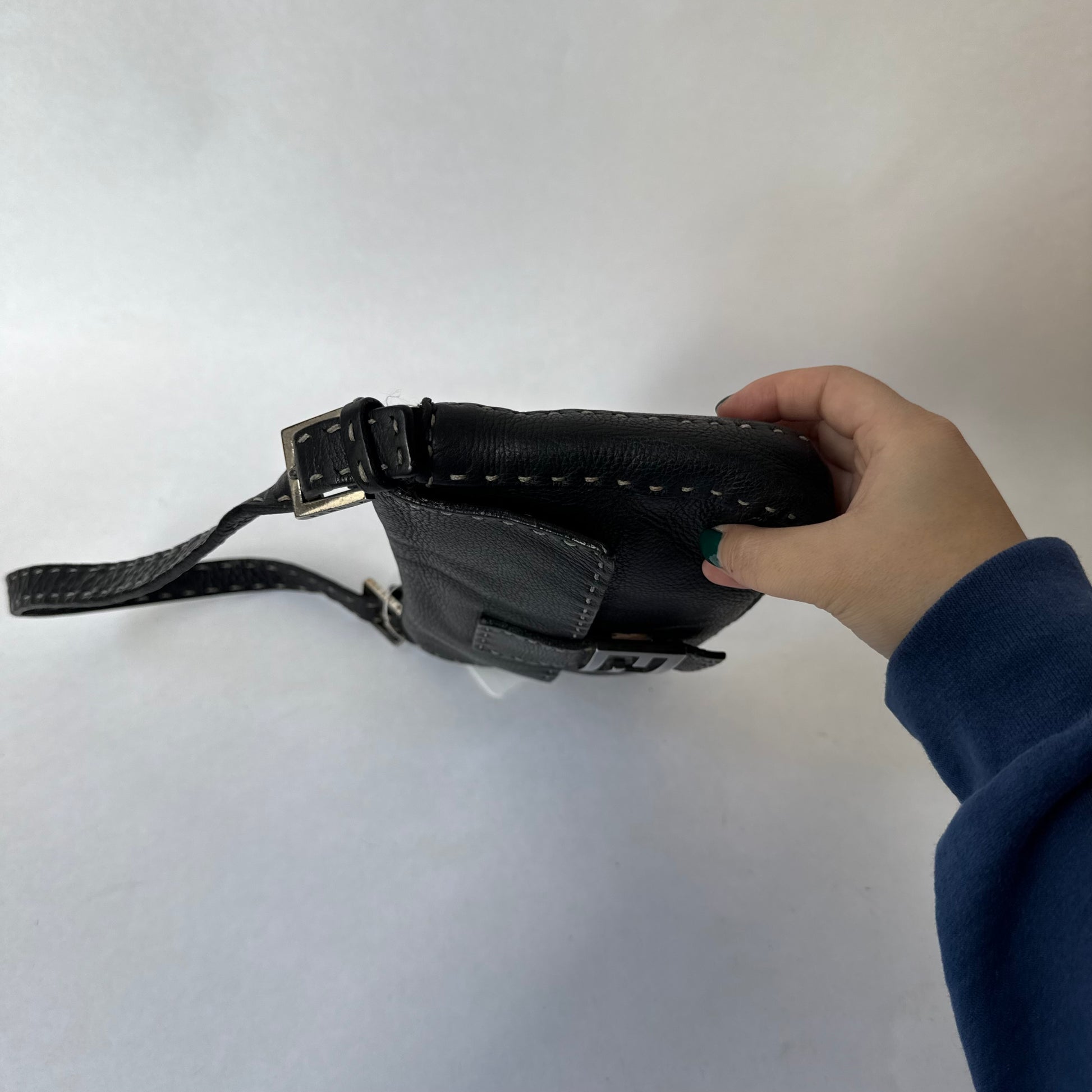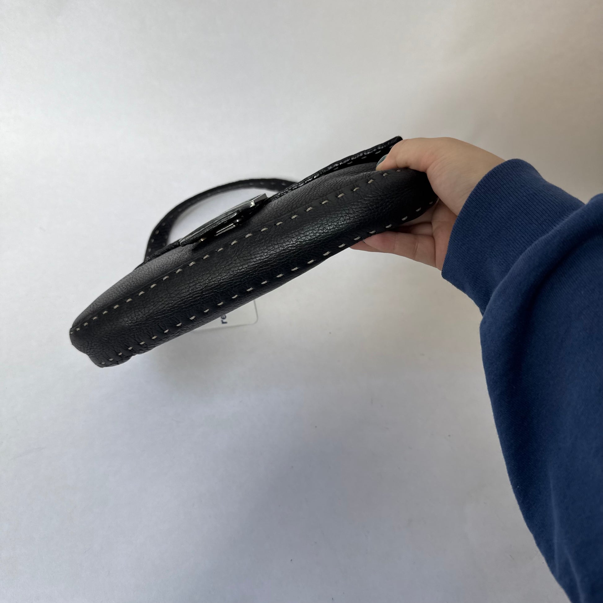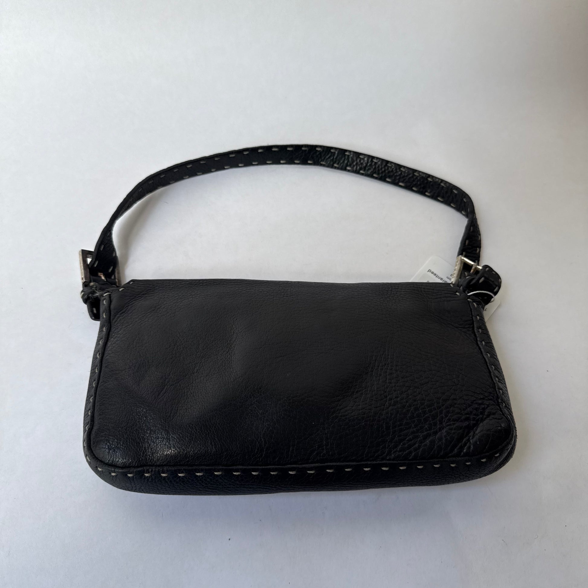 Fendi Black Selleria Leather Stitched Baguette Shoulder Bag