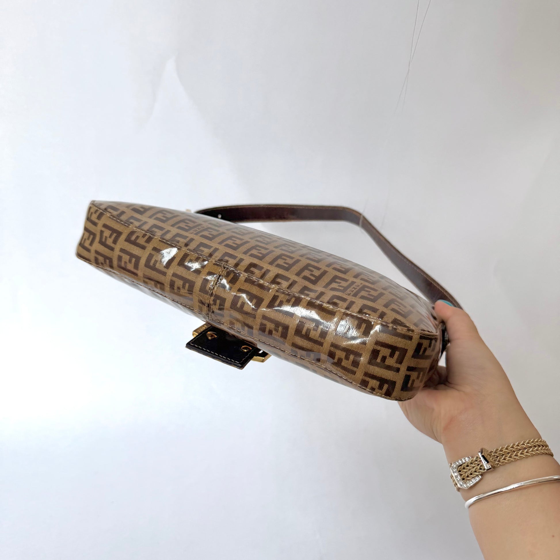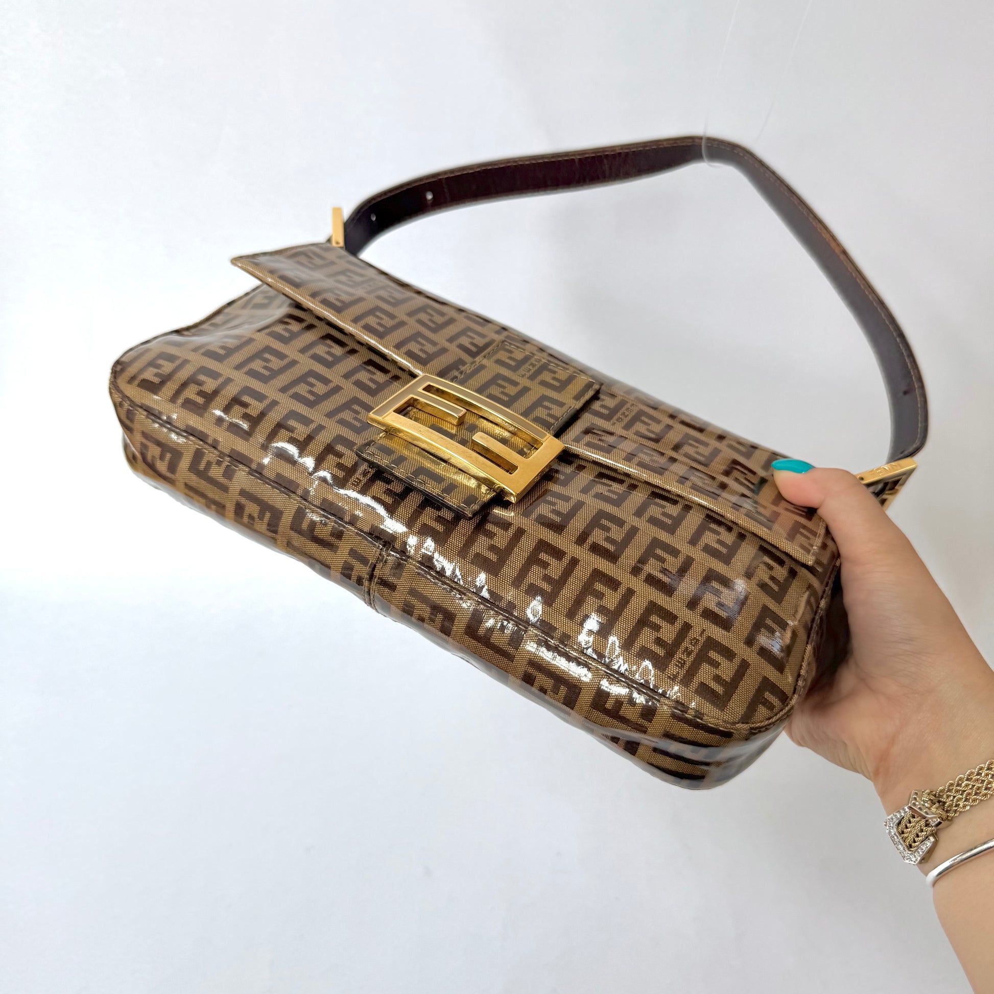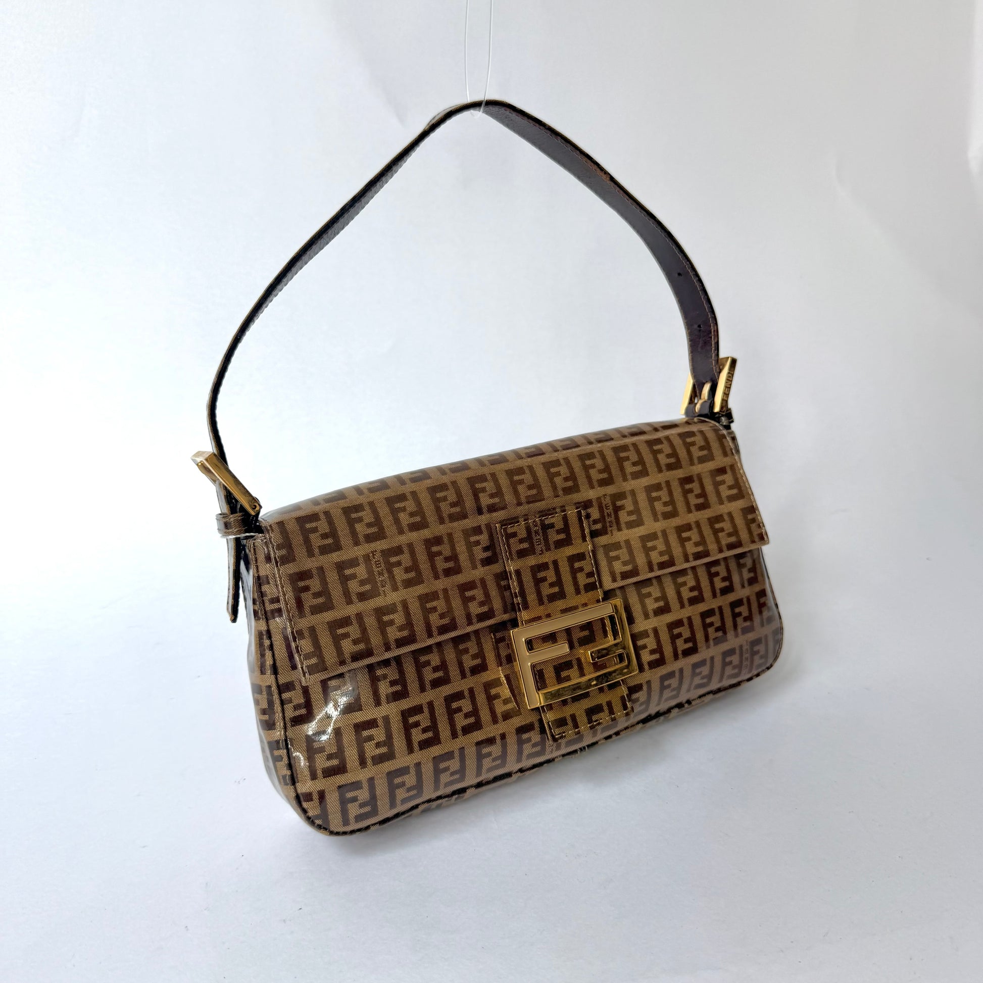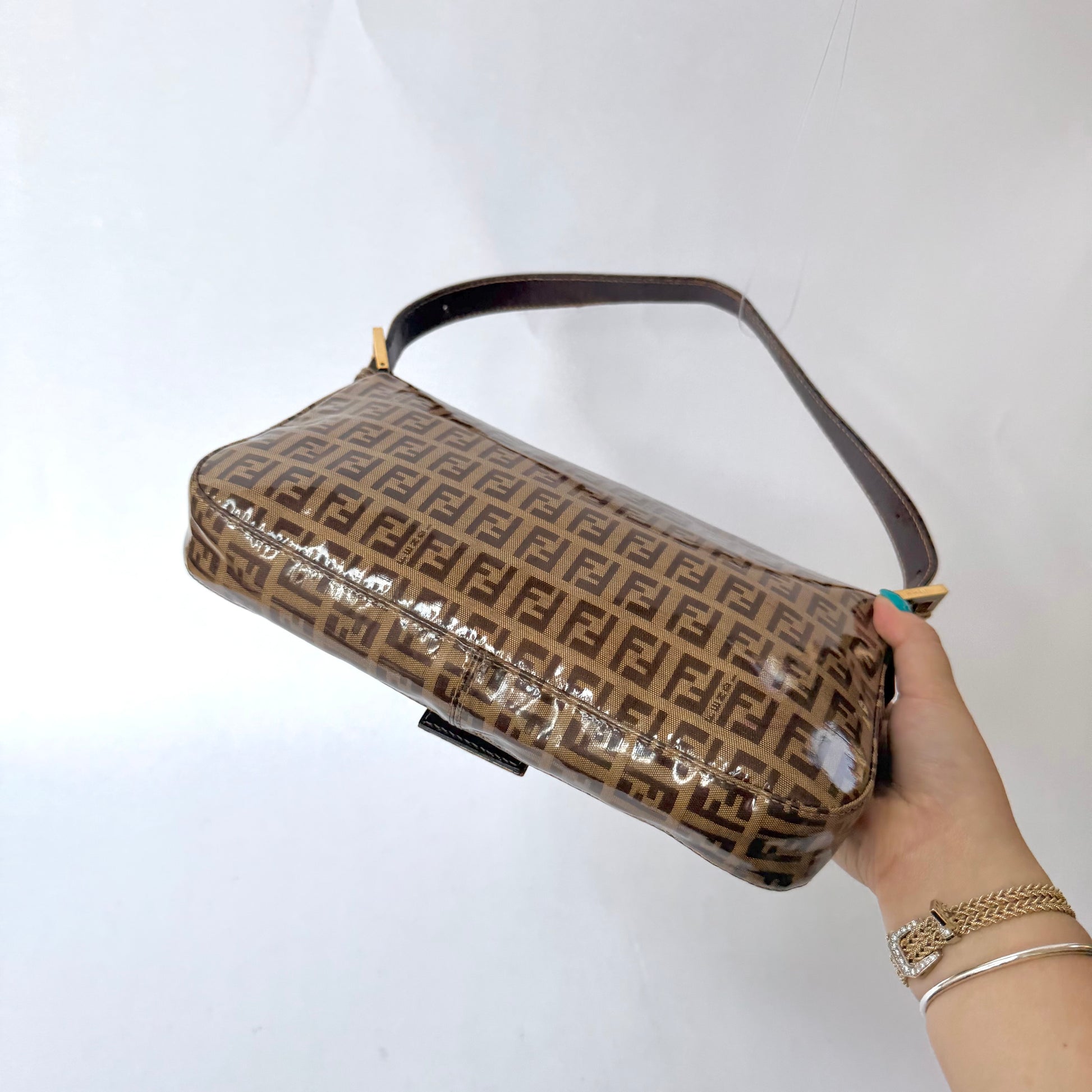 Fendi Brown Zucchino Patent Leather Baguette