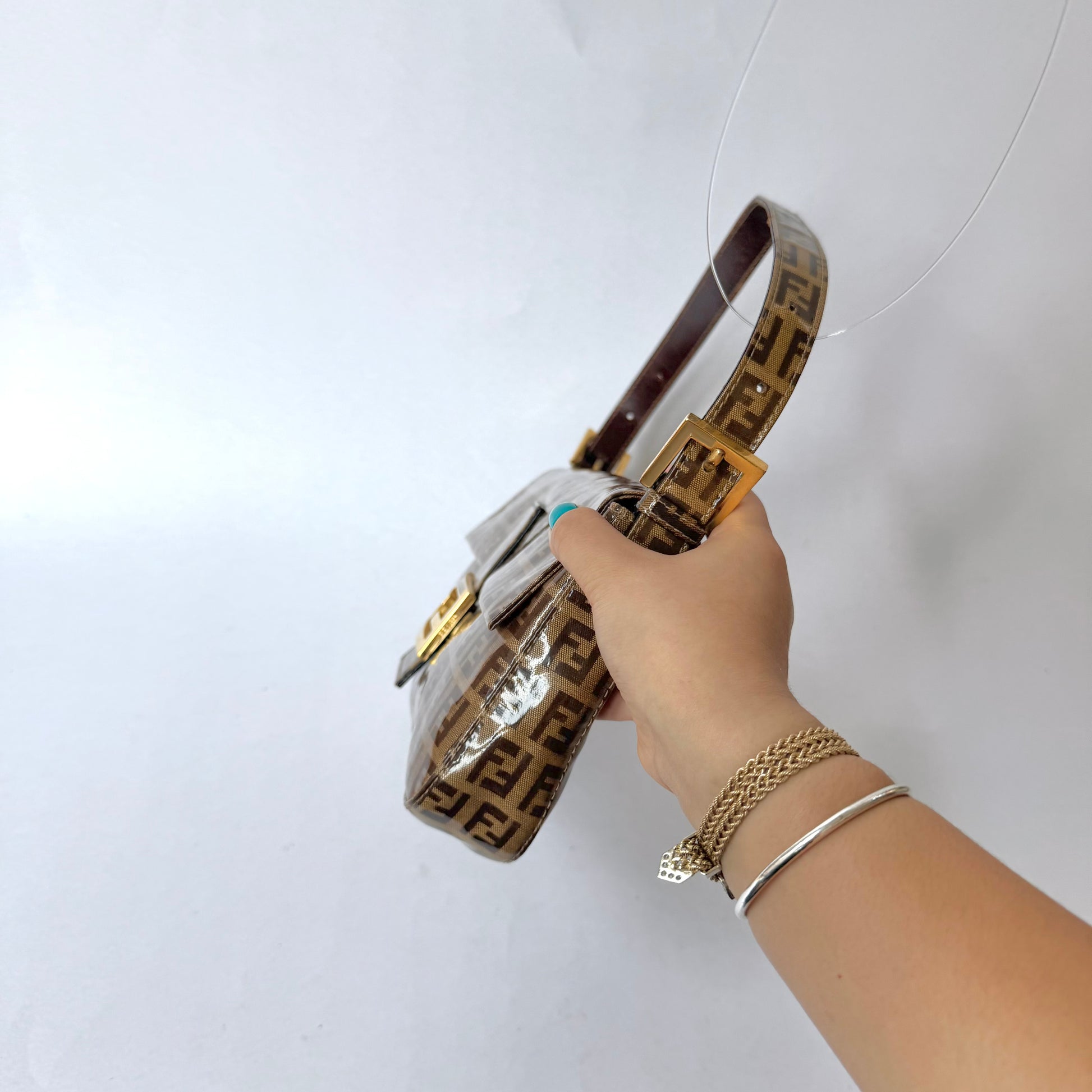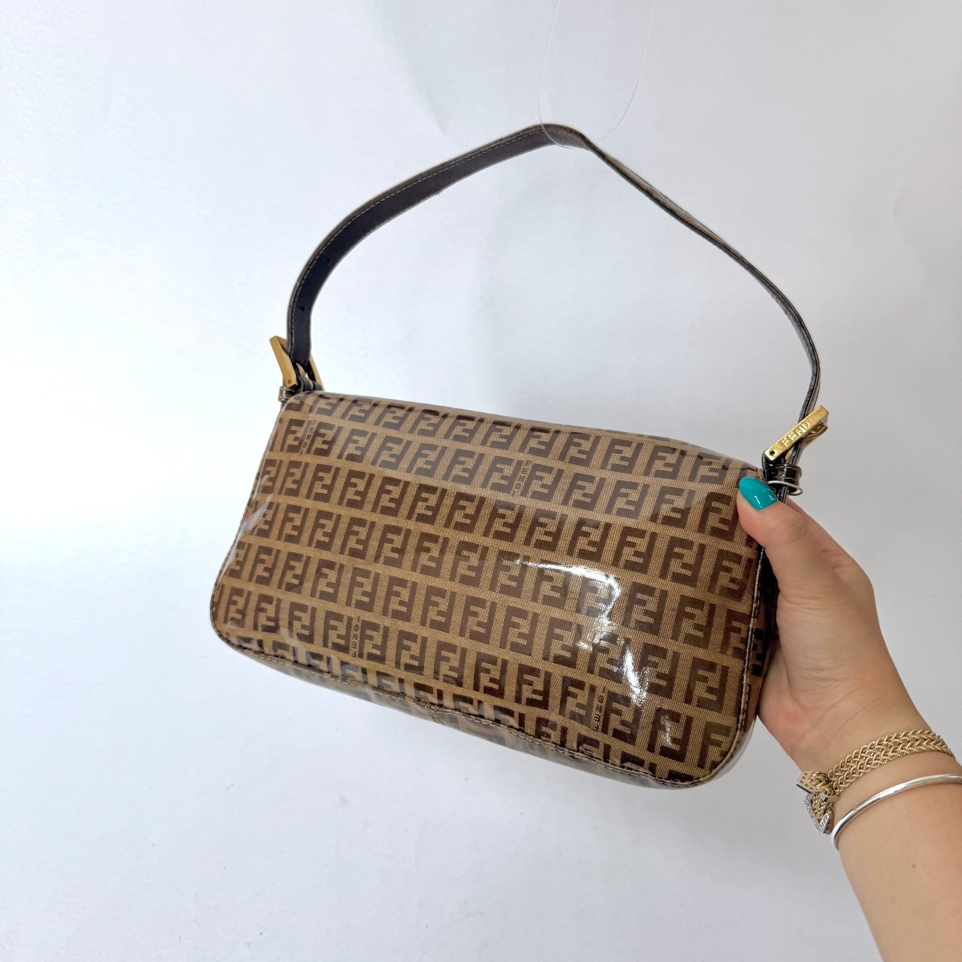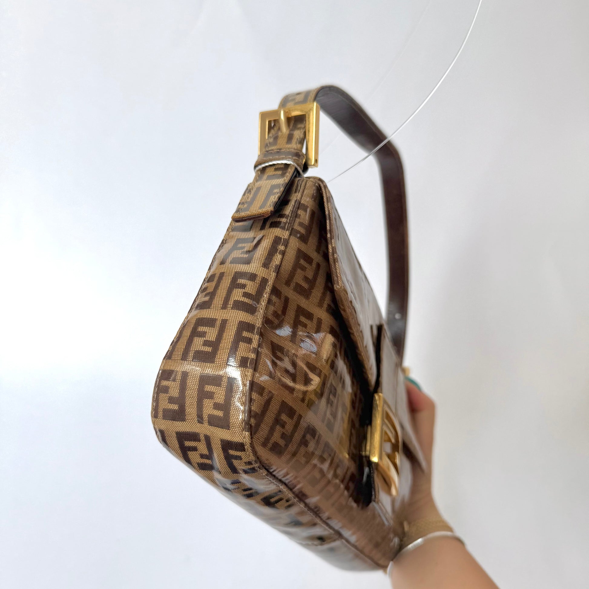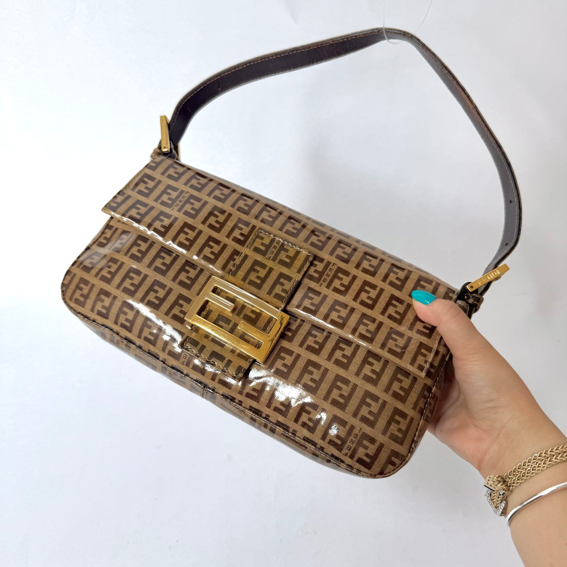 Fendi Brown Zucchino Patent Leather Baguette