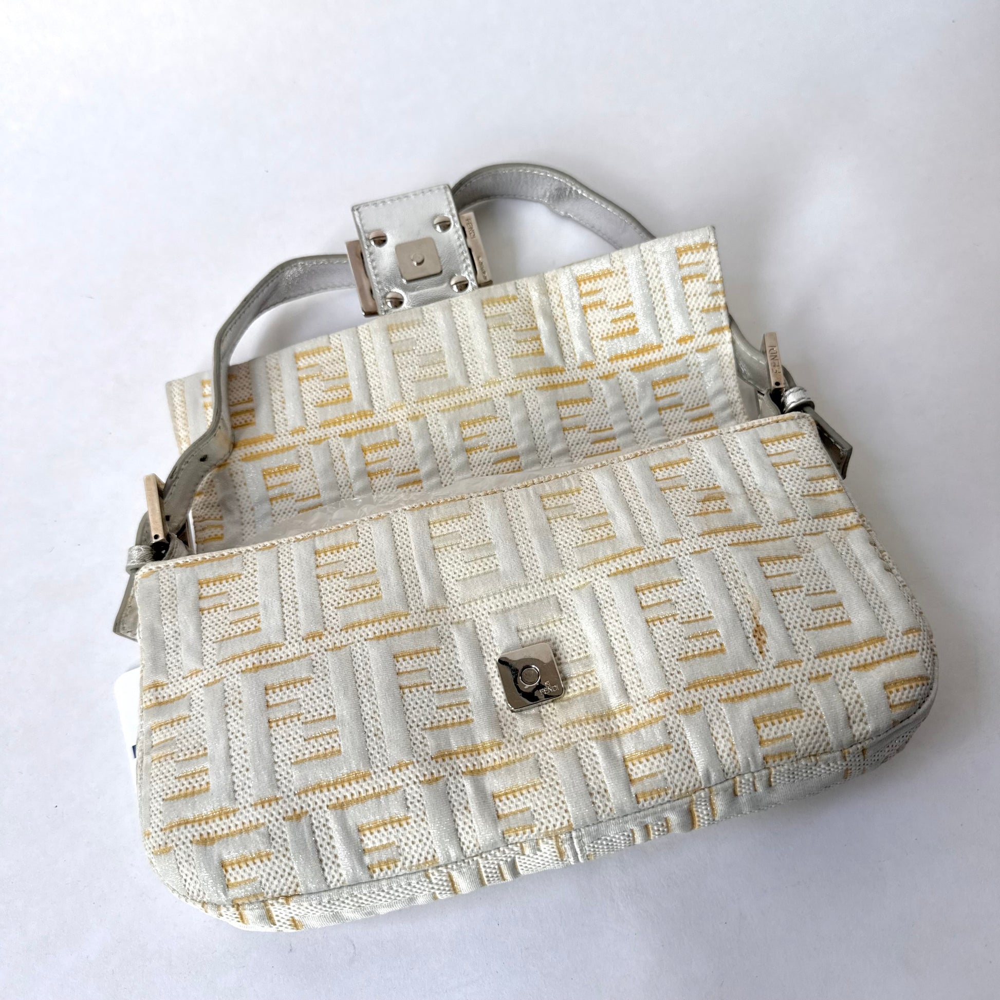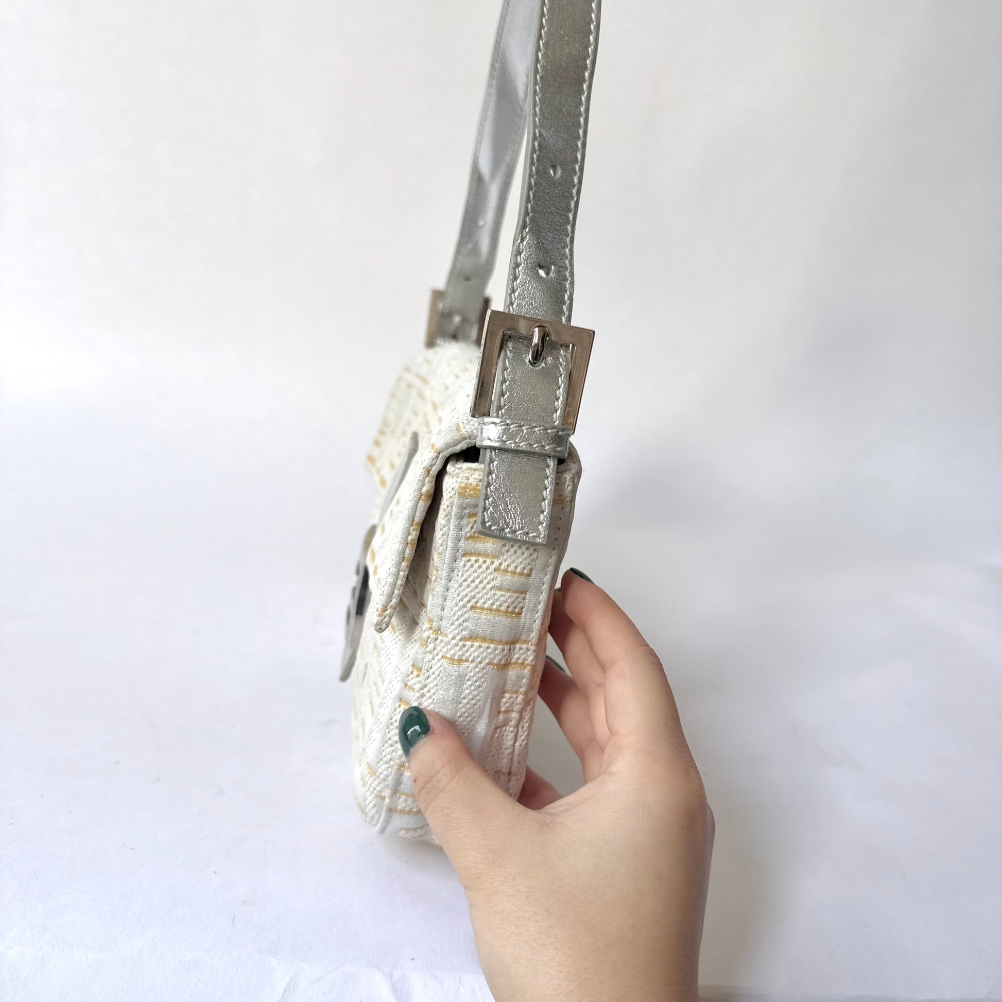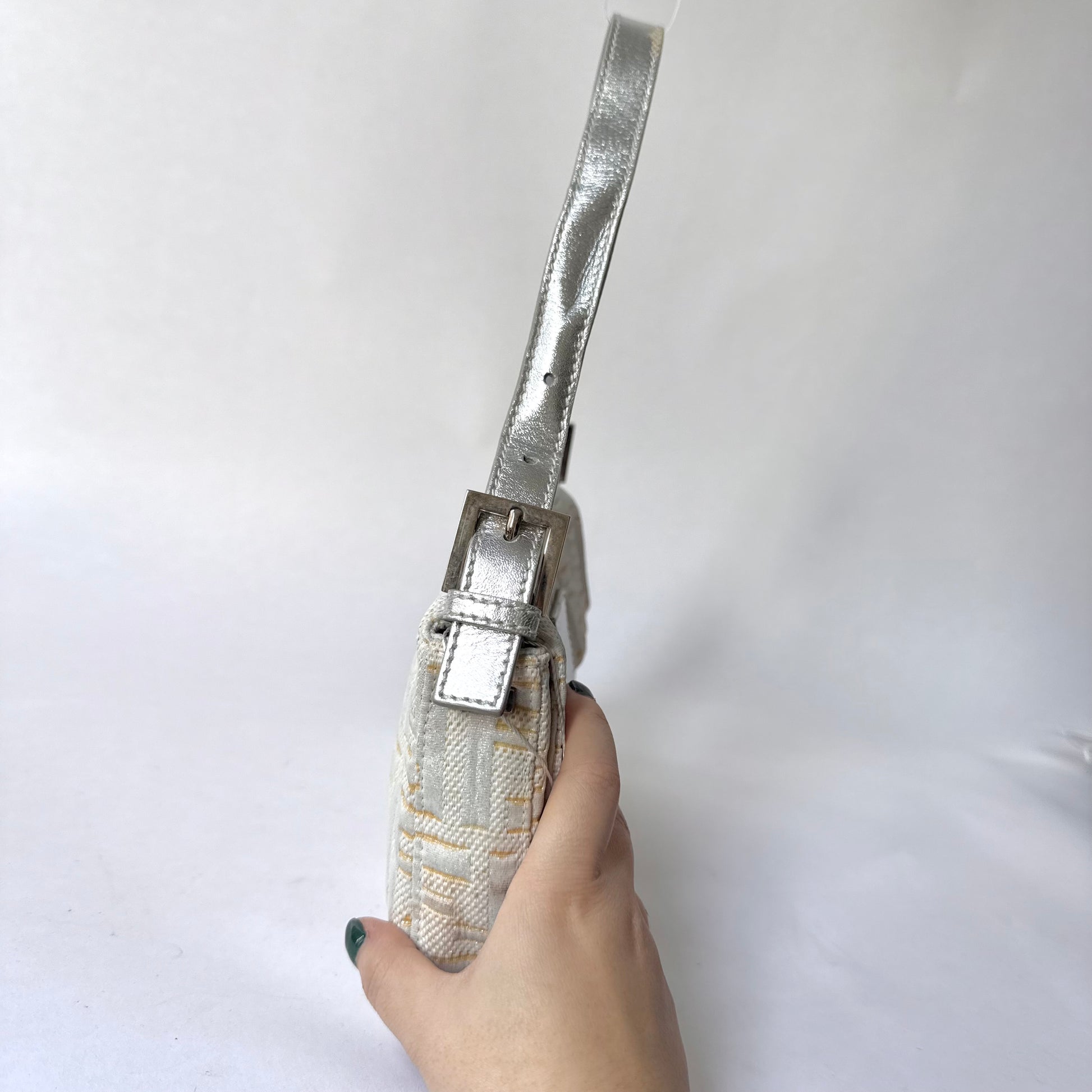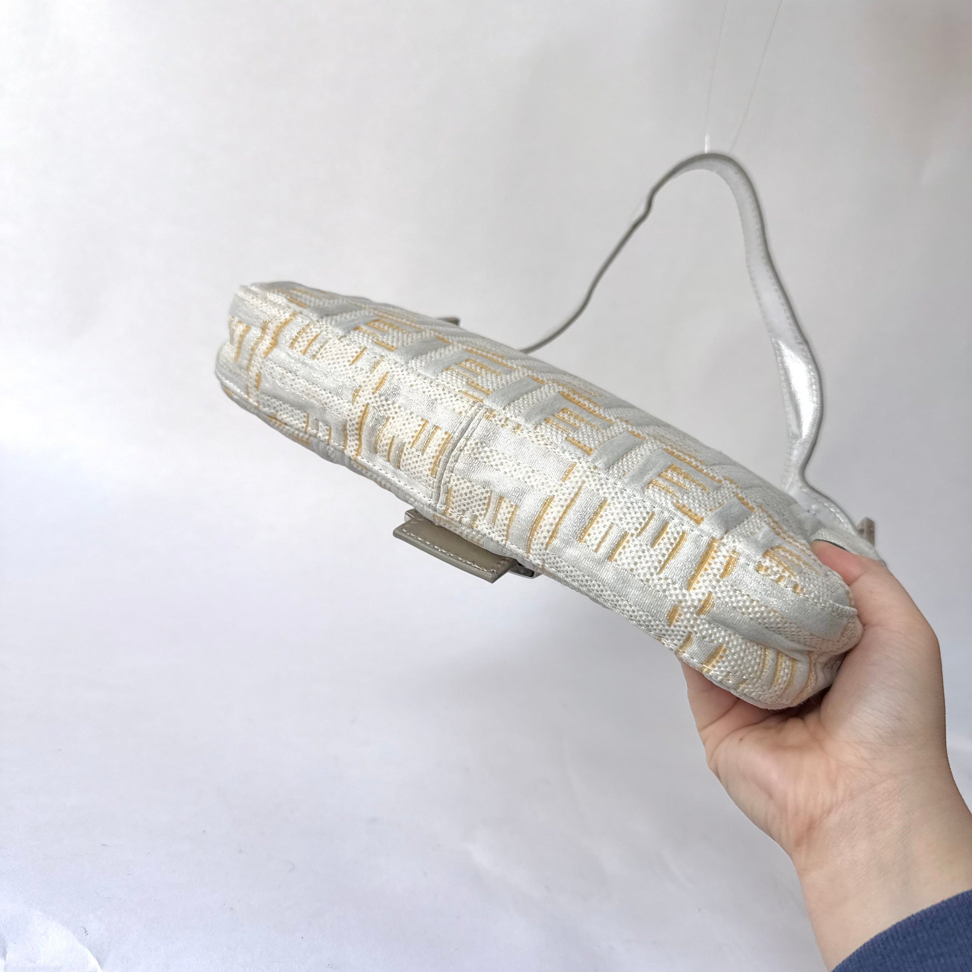 Fendi Cream Metallic Zucca Canvas Baguette Shoulder Bag