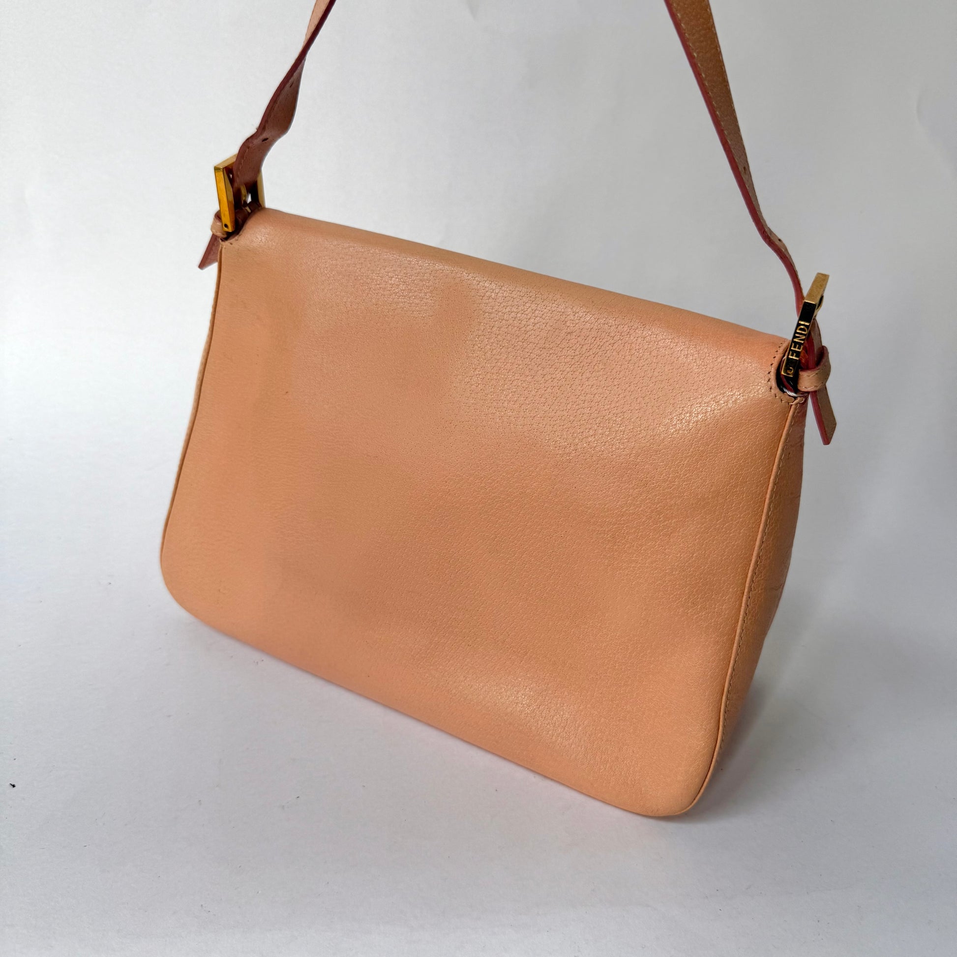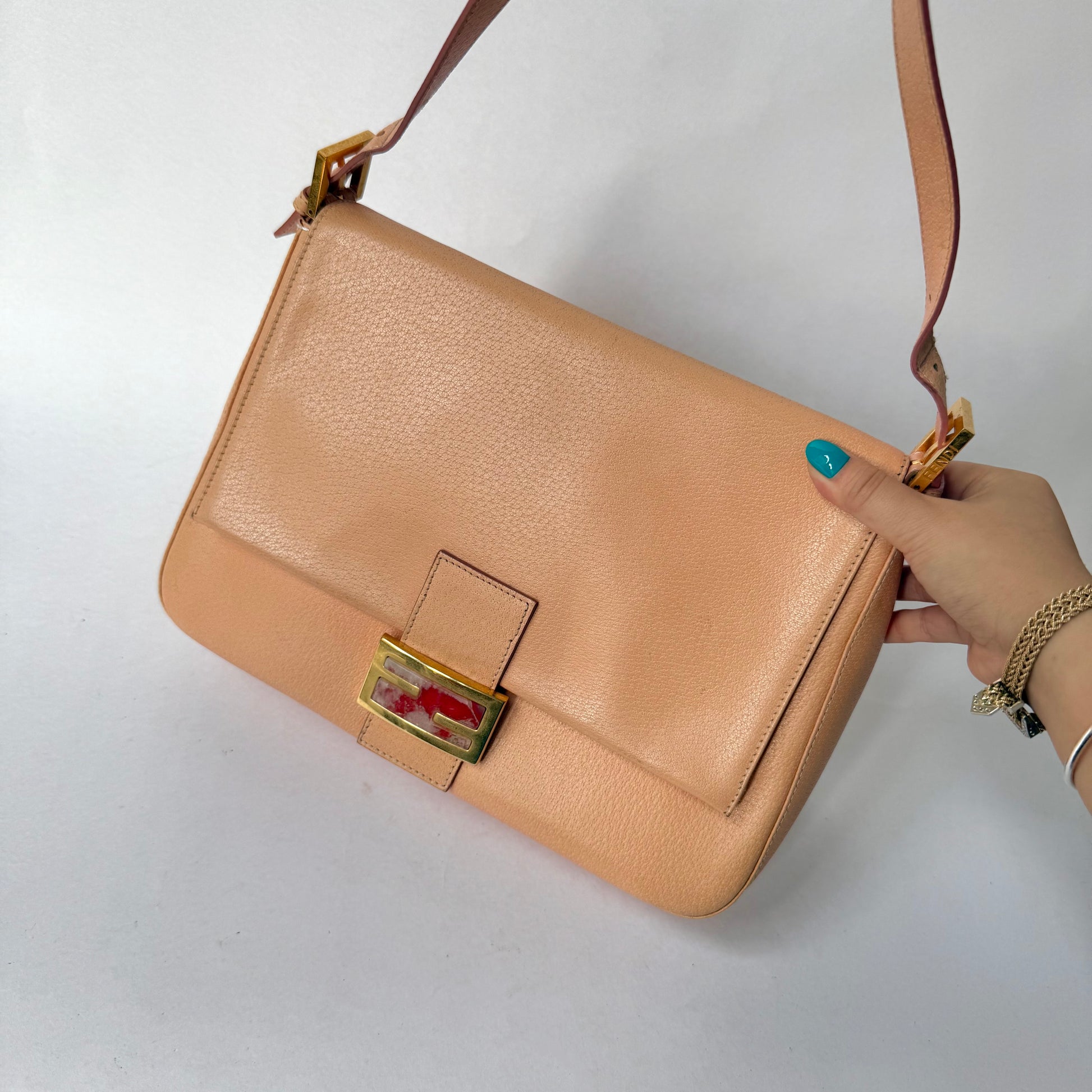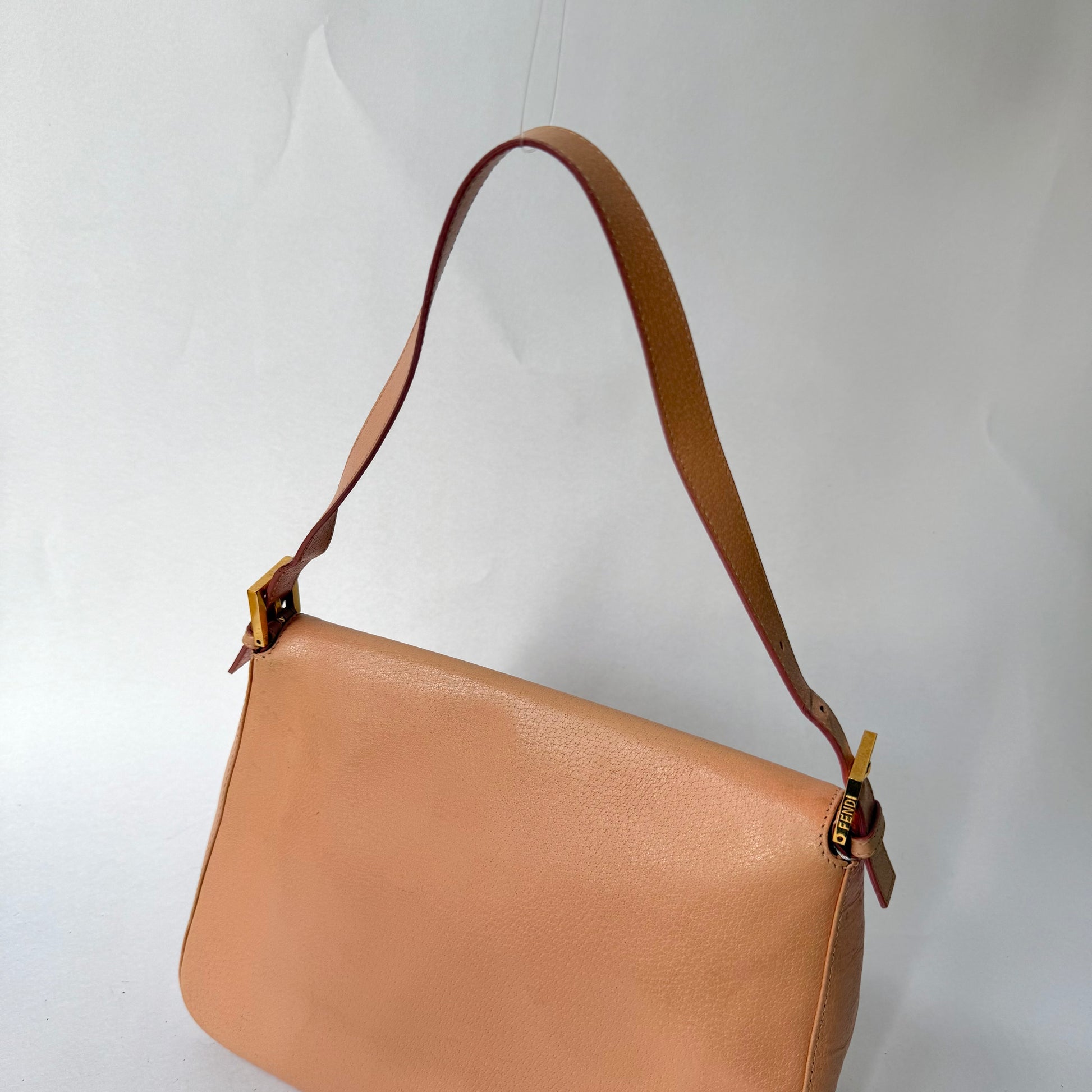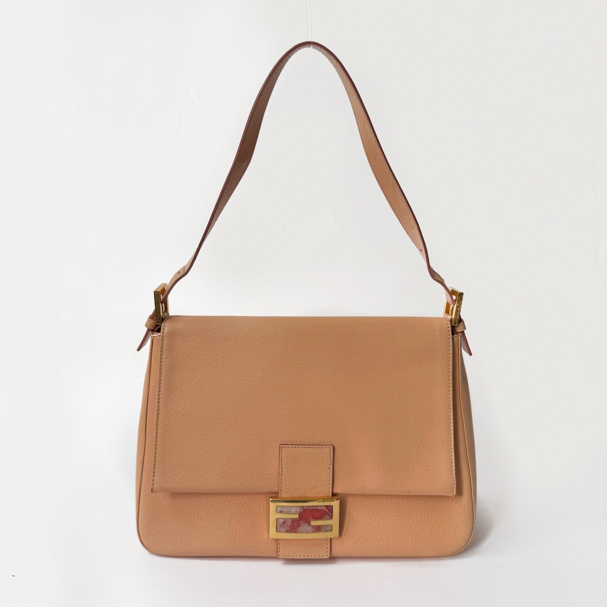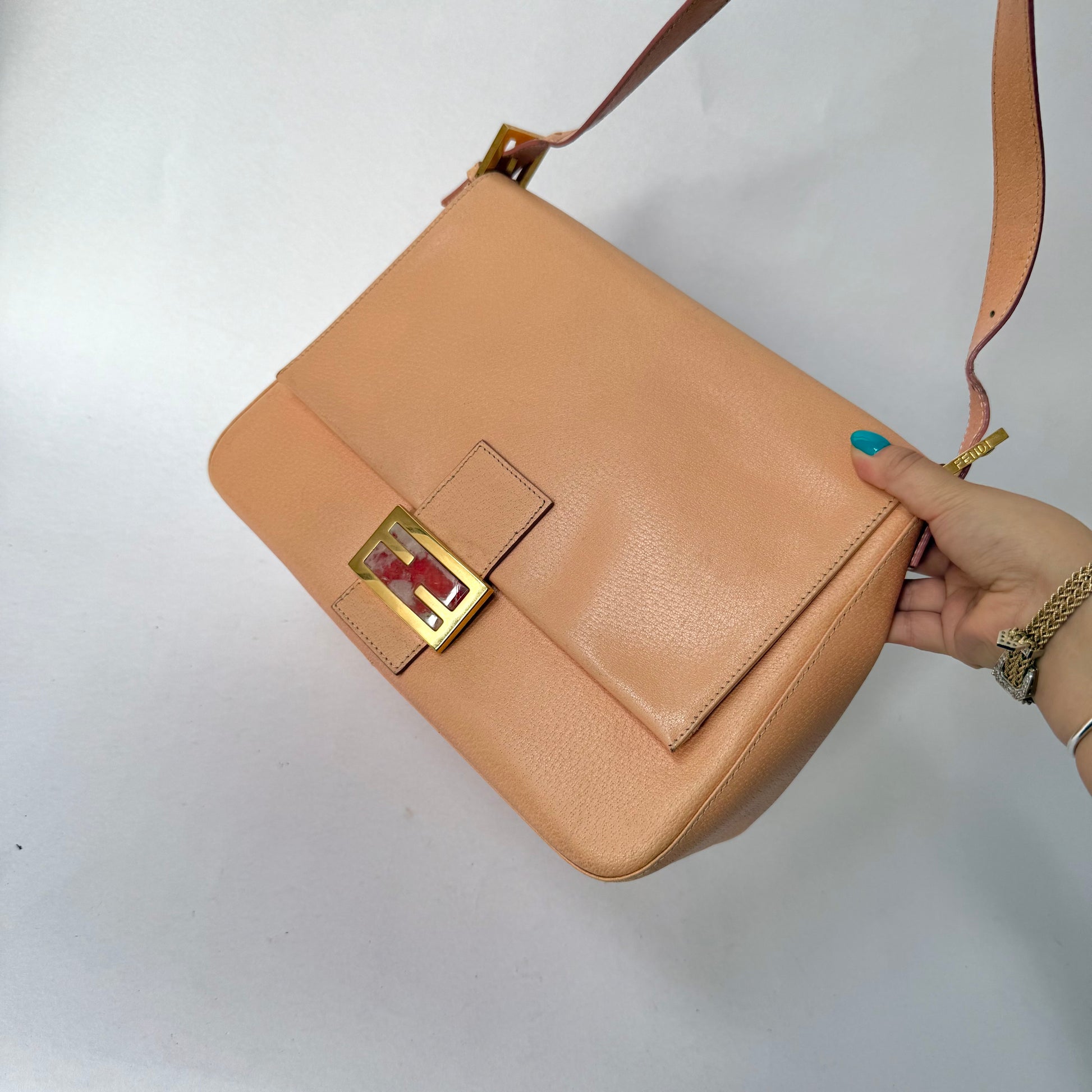 Fendi Peach Pebbled Leather Mama Baguette w/ Stone Plaque