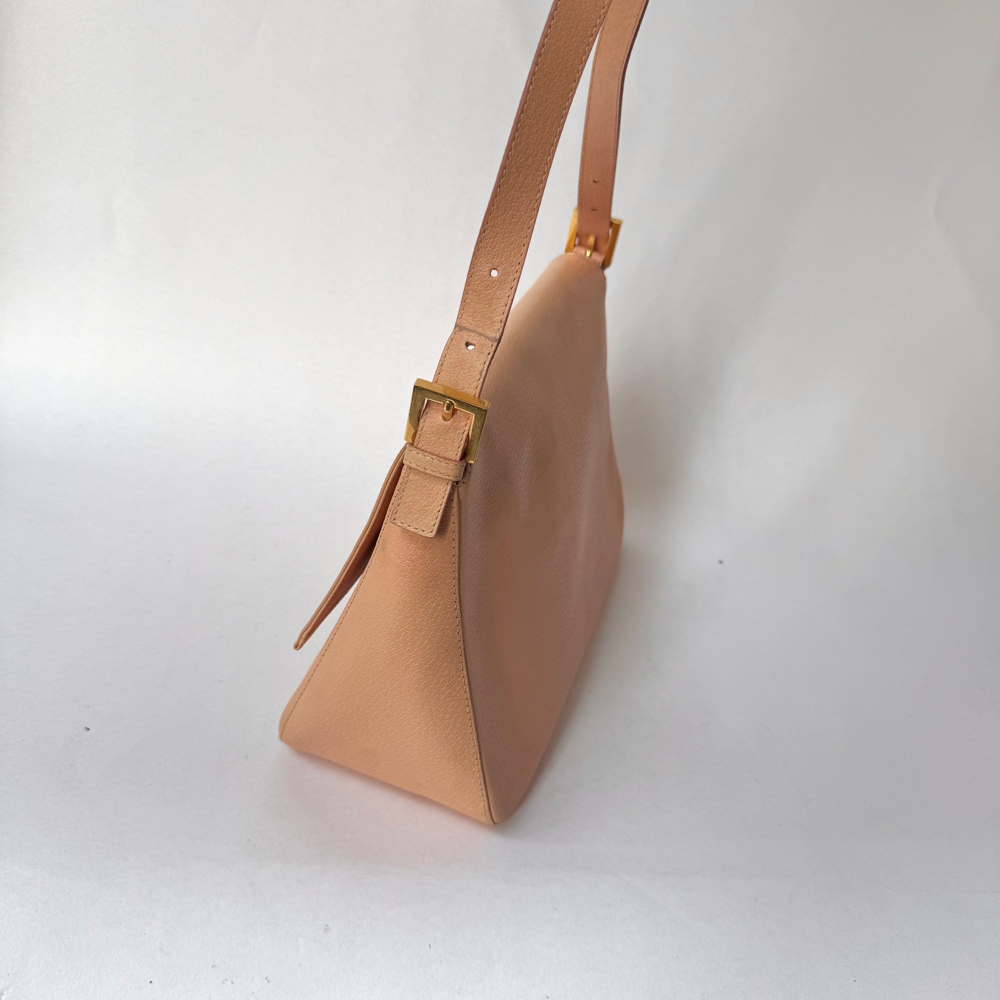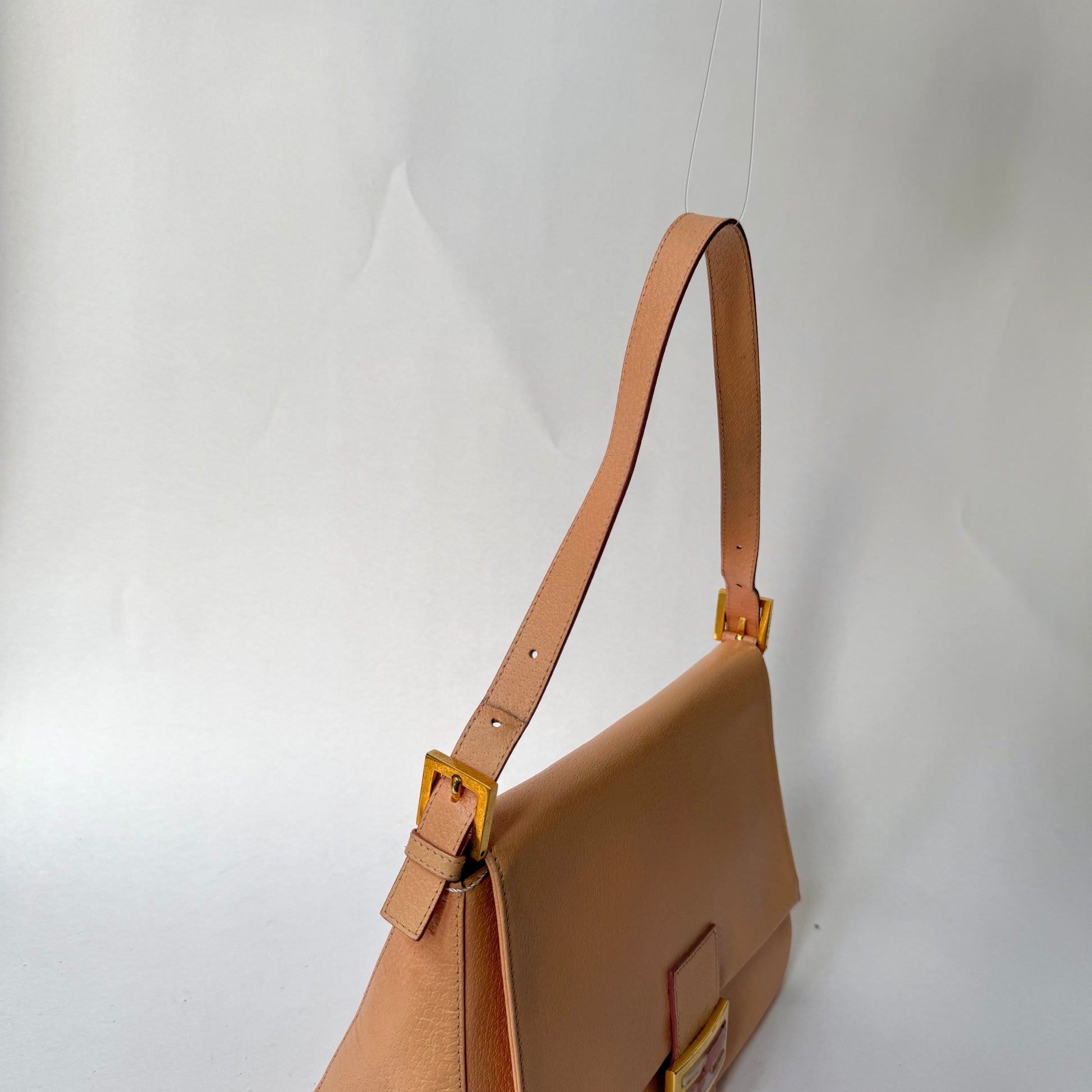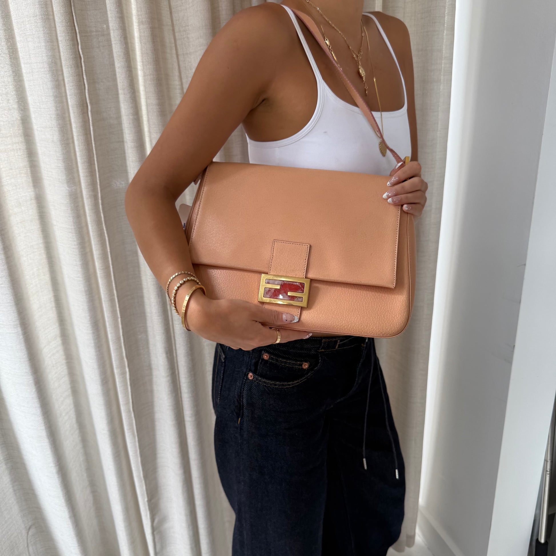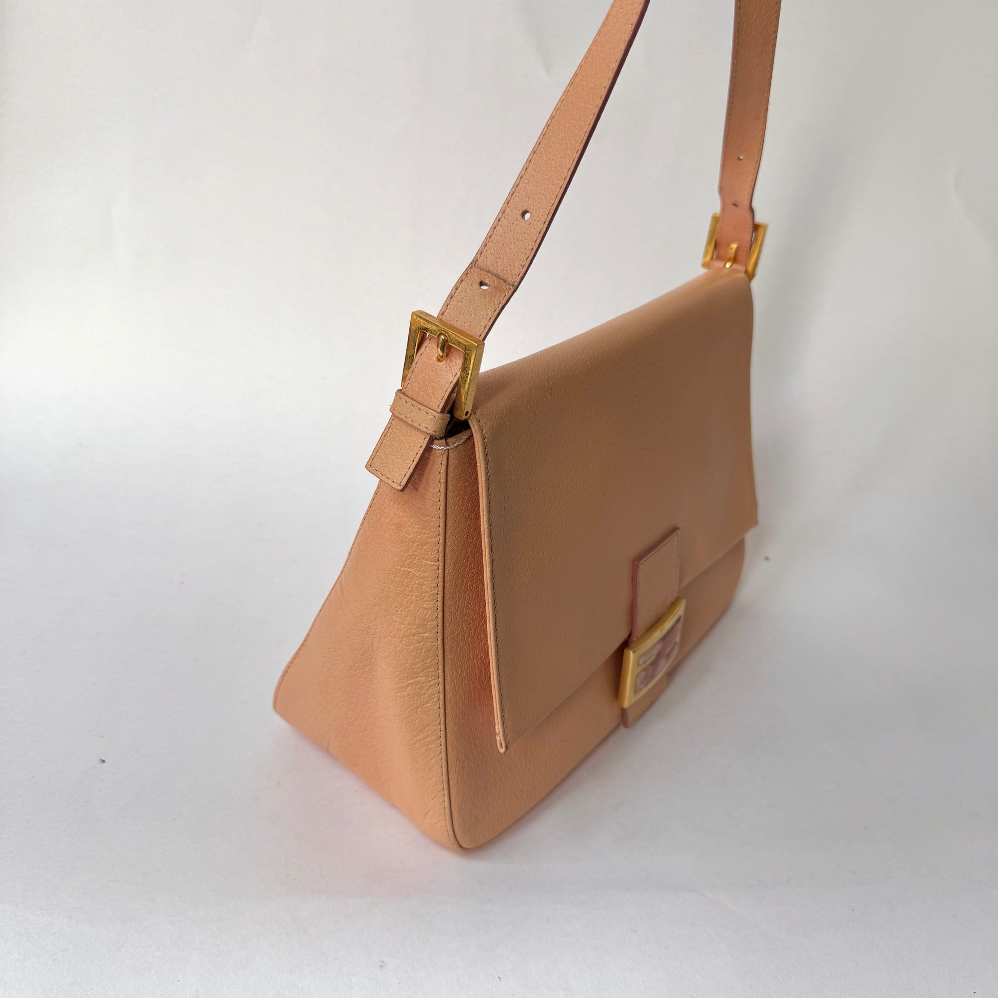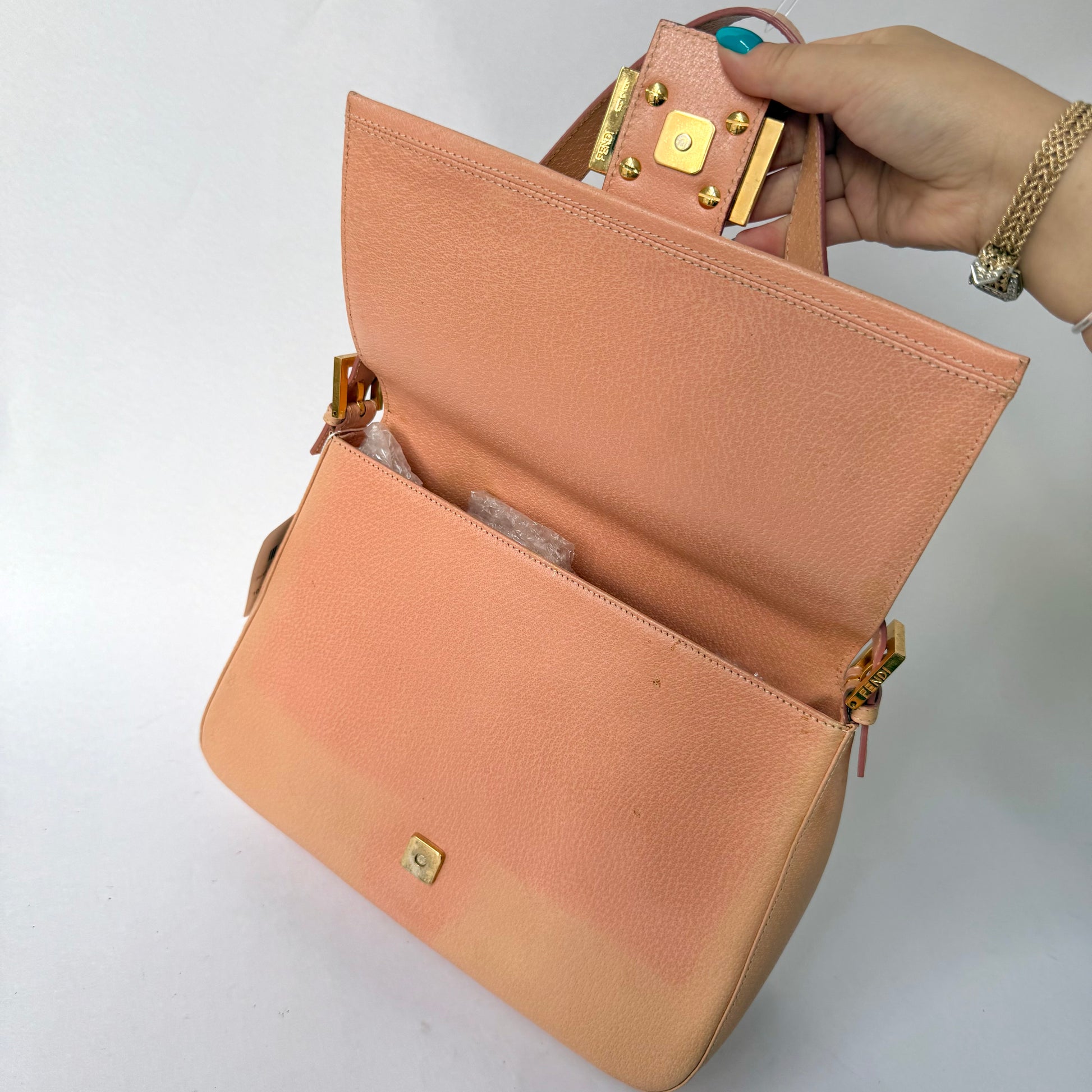 Fendi Peach Pebbled Leather Mama Baguette w/ Stone Plaque
