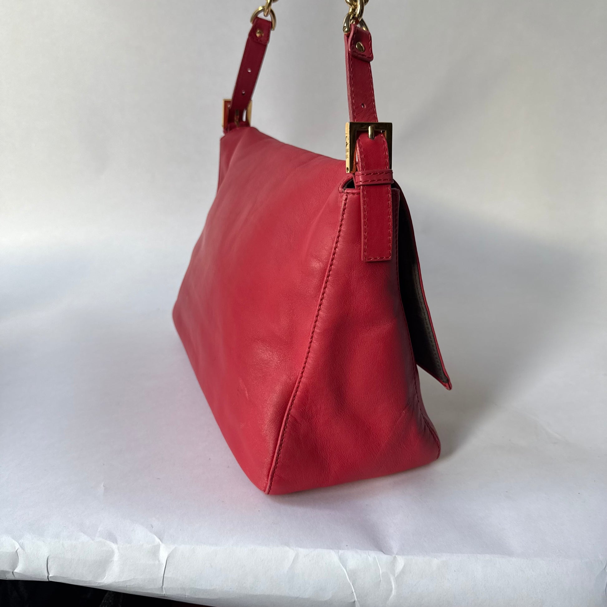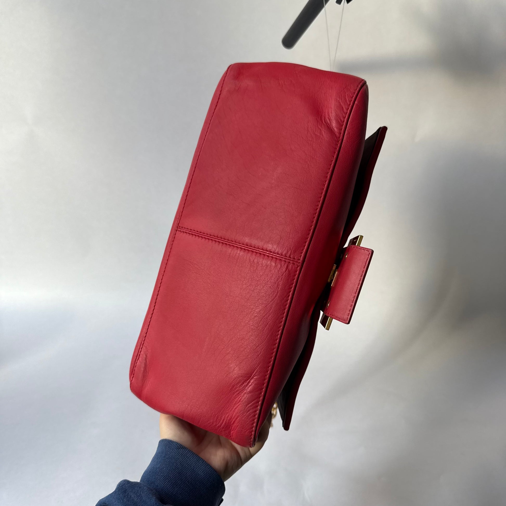 Fendi Red Leather Python Detail Mama Baguette Shoulder Bag