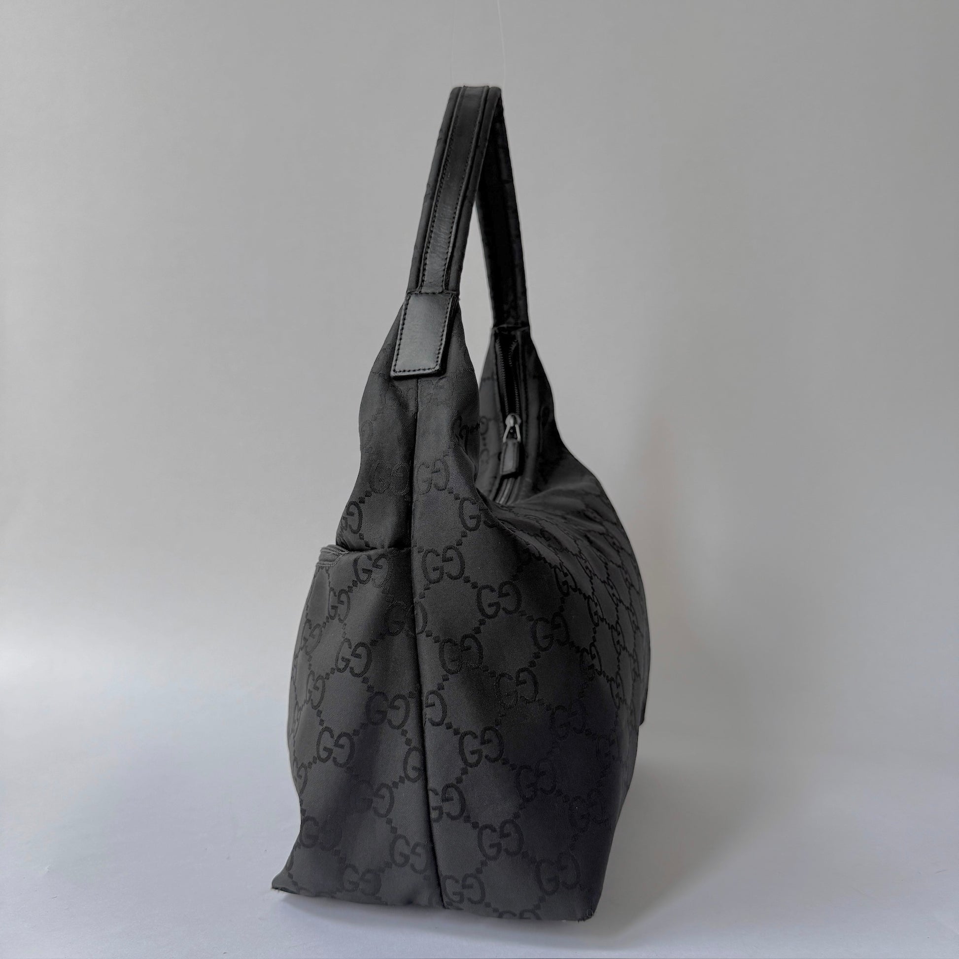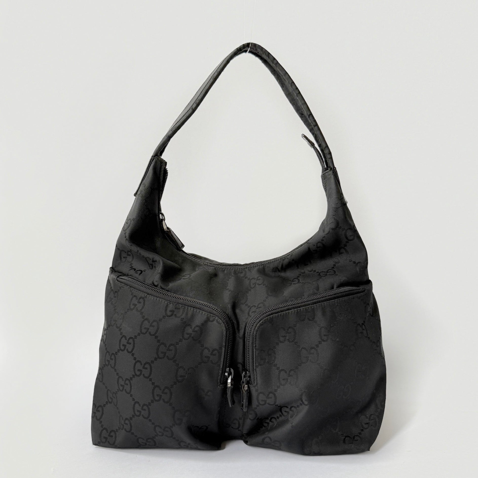 Gucci Black Canvas Monogram Double Pocket Shoulder Bag