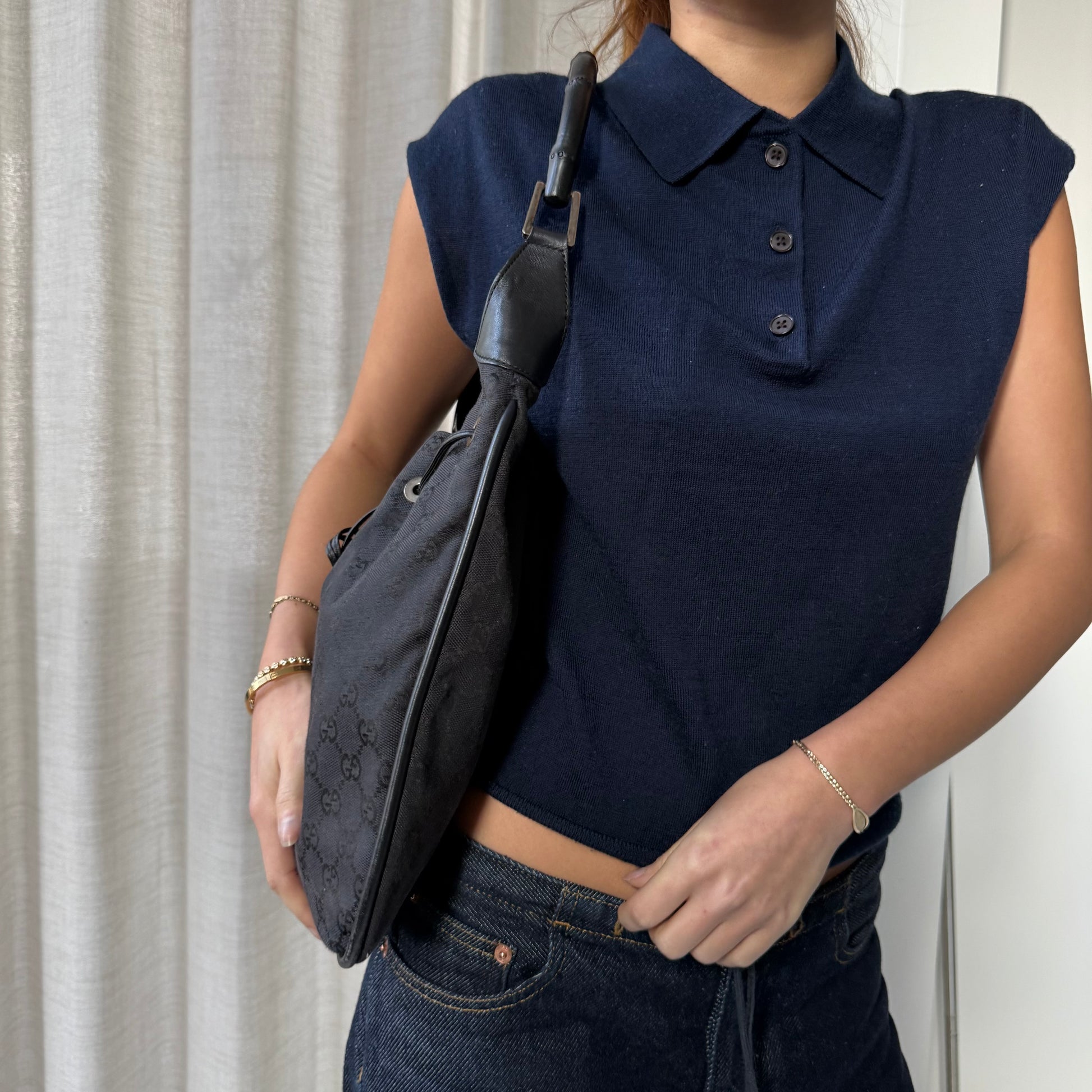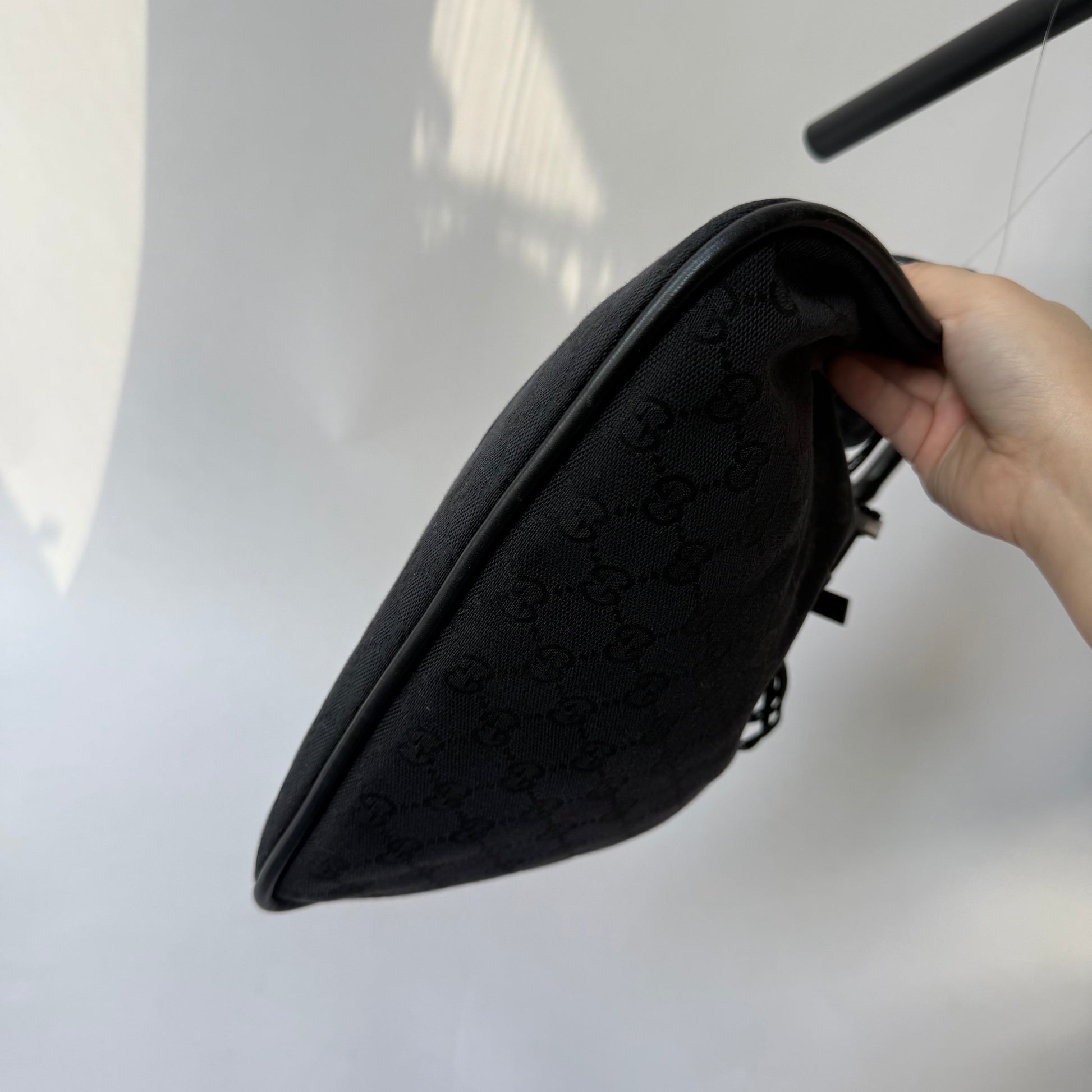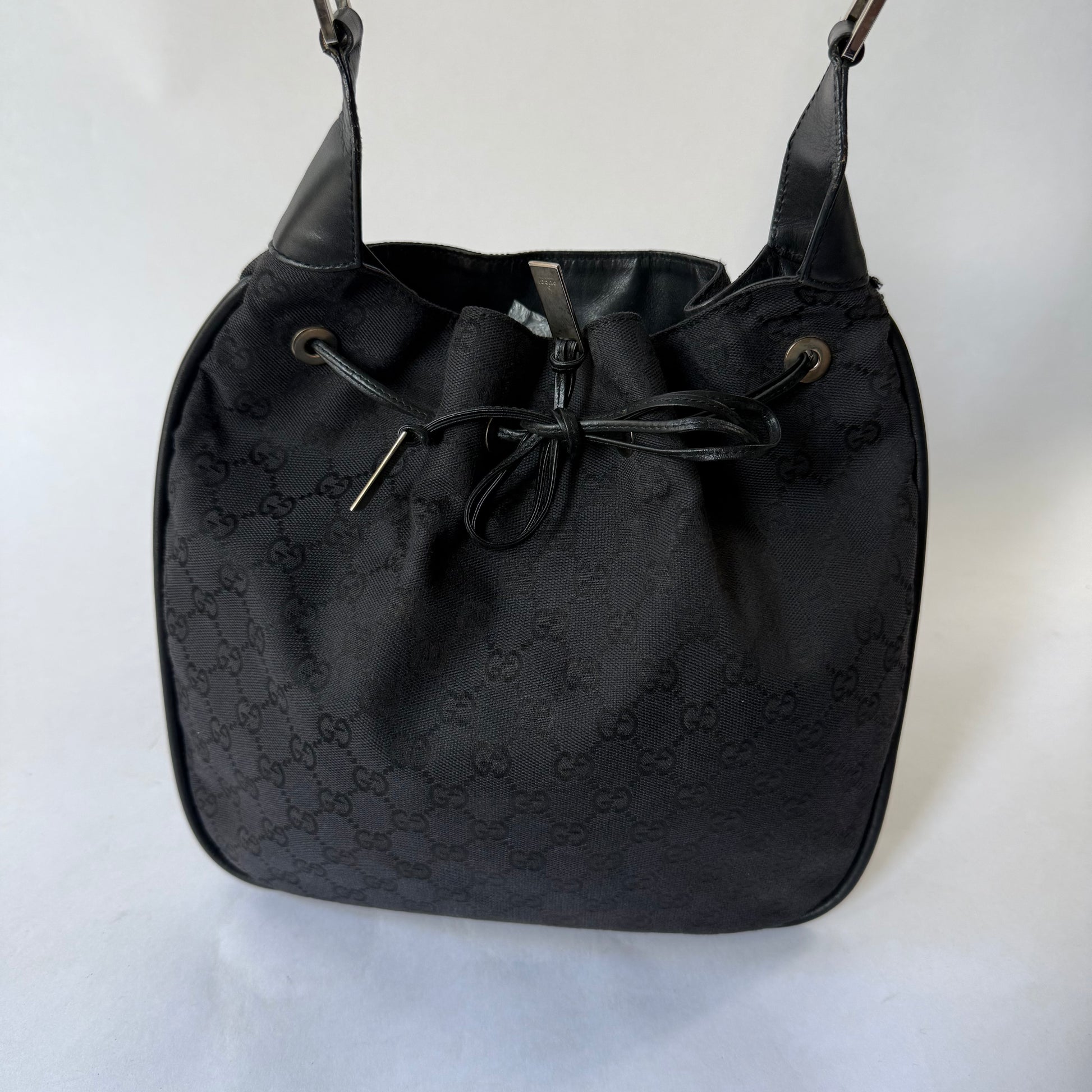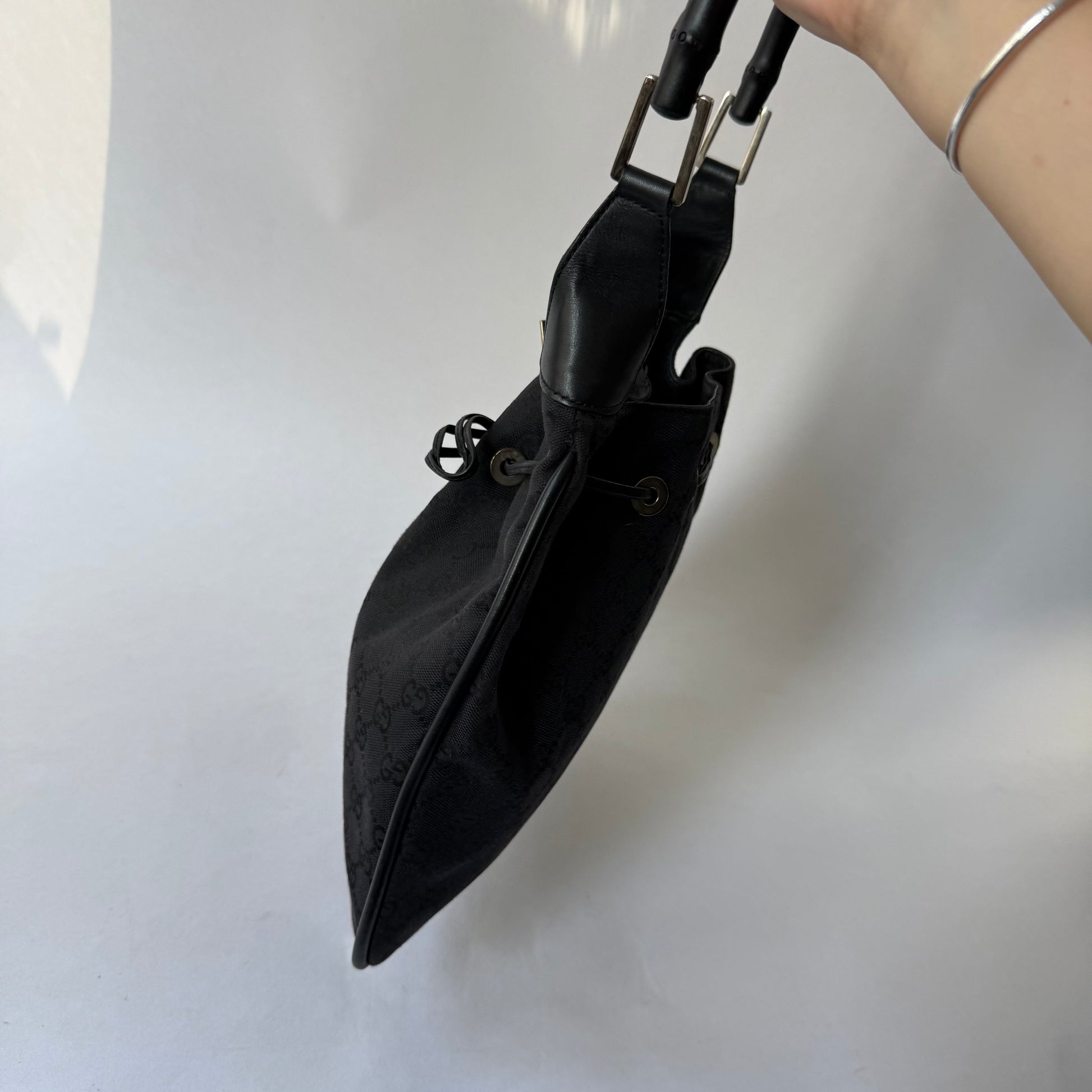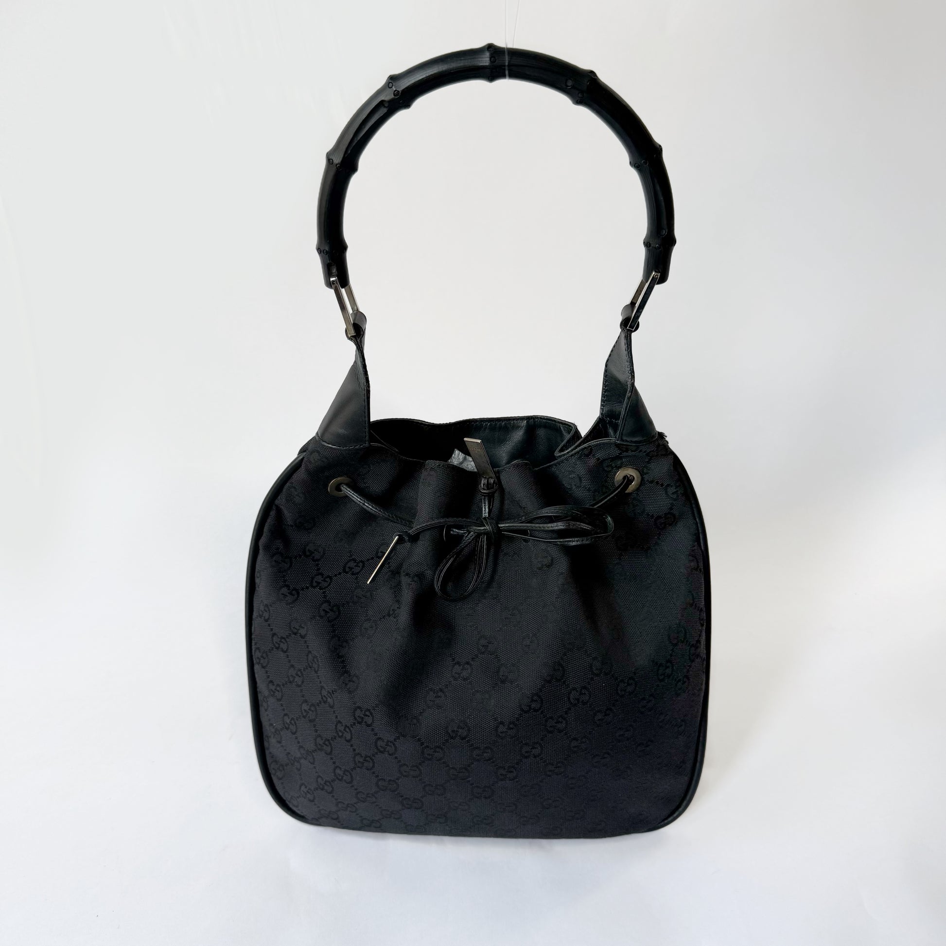 Gucci Black Monogram Bamboo Handle Tote Bag