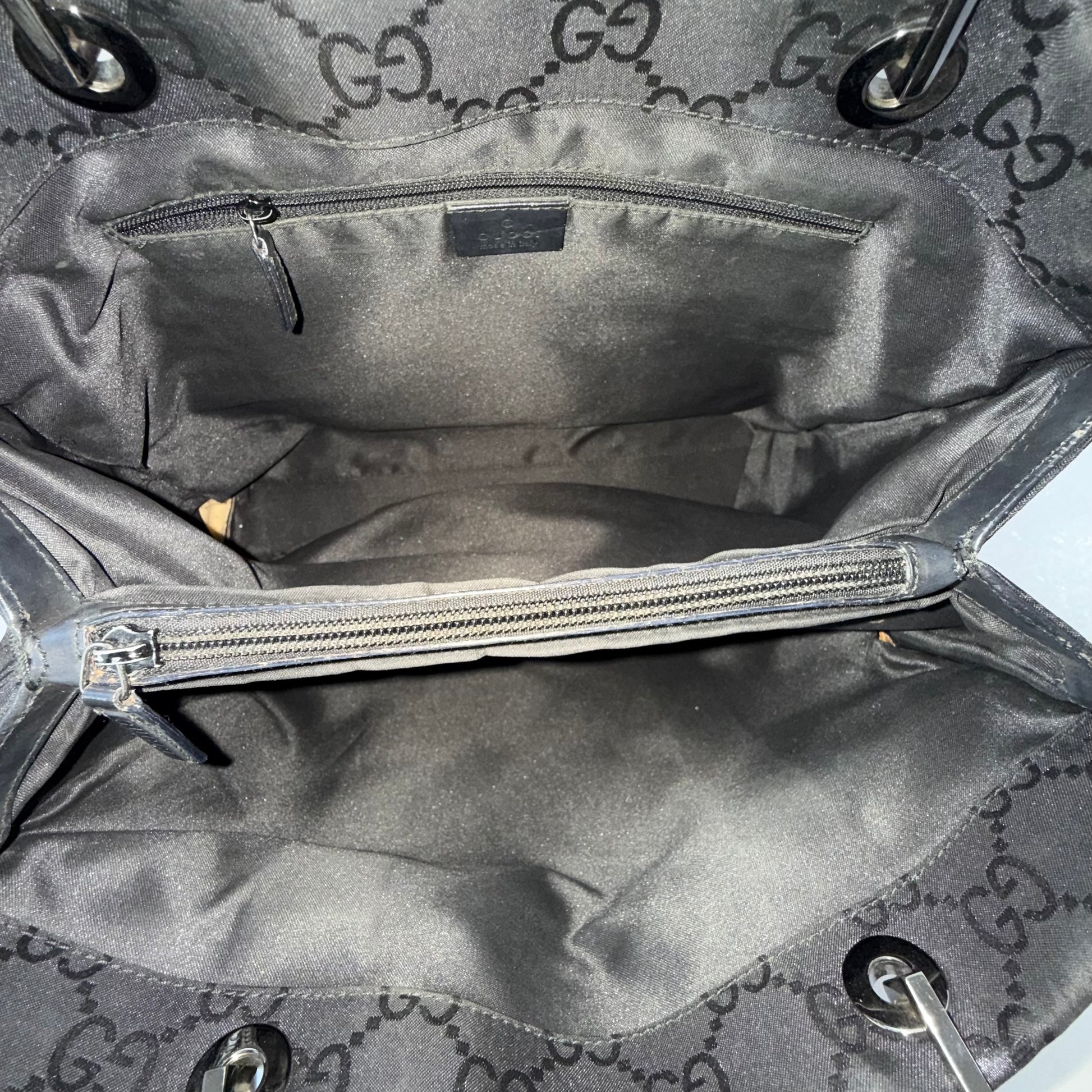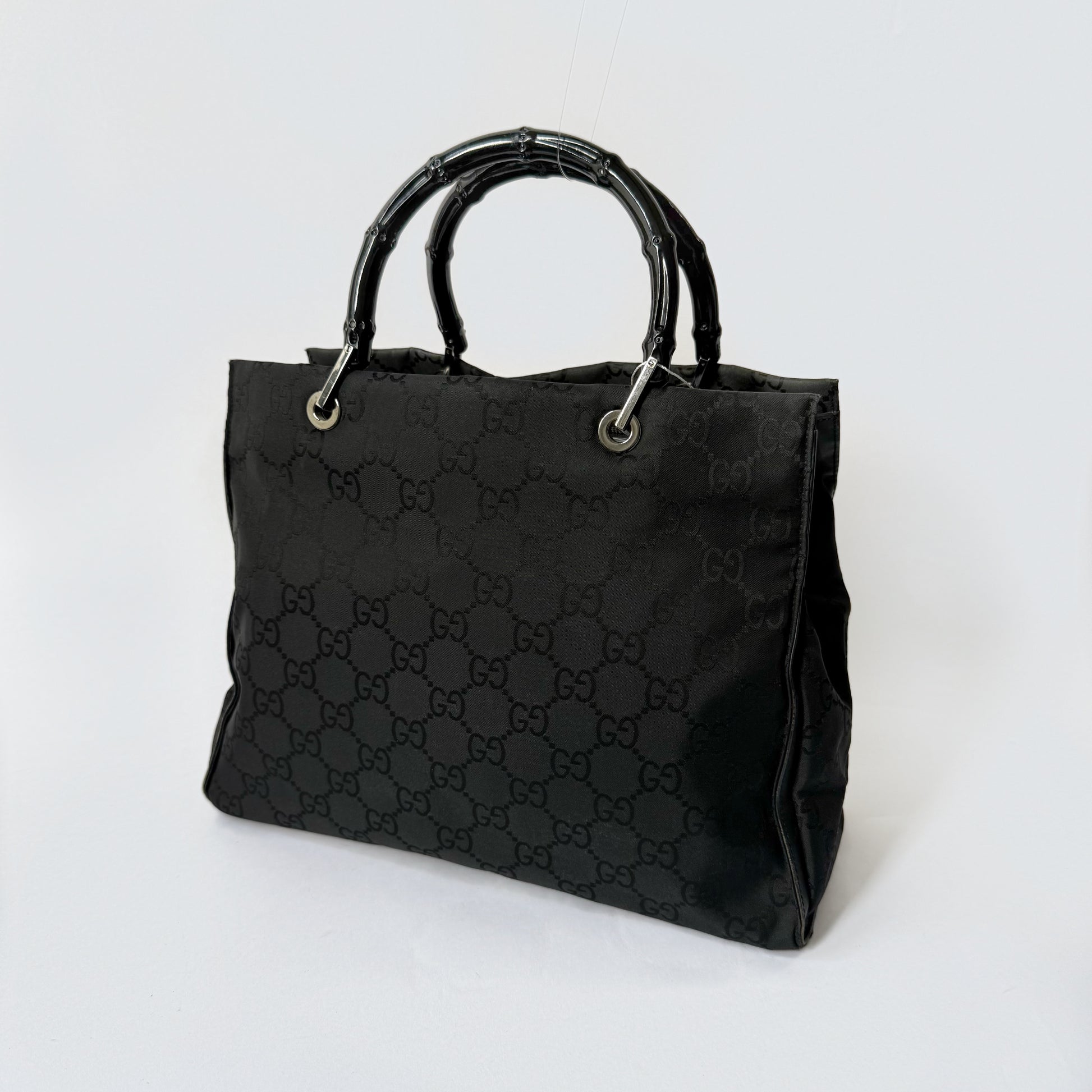 Gucci Black Monogram Canvas Bamboo Handle Shoulder Bag