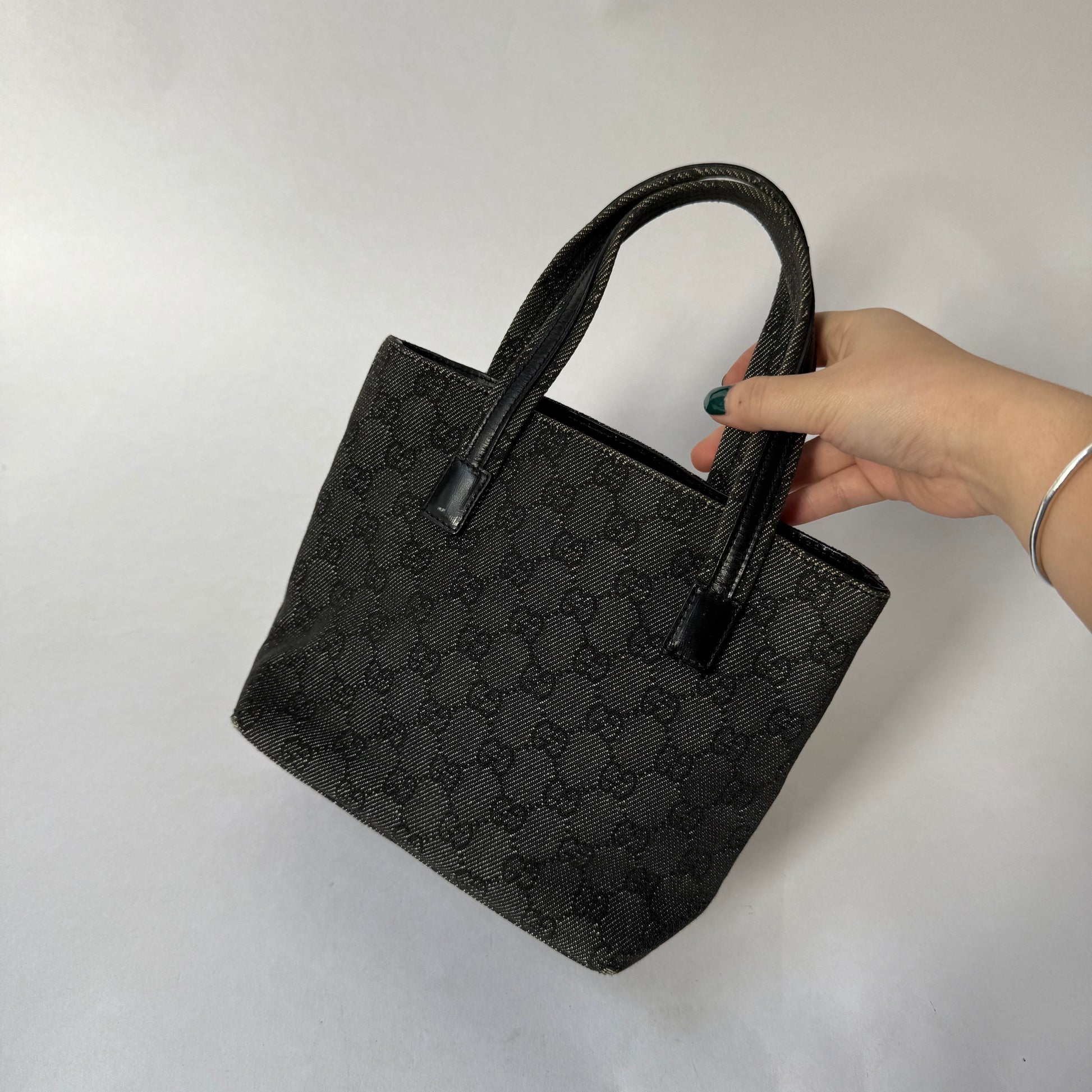 Gucci Black Monogram Denim Small Shoulder Tote Bag