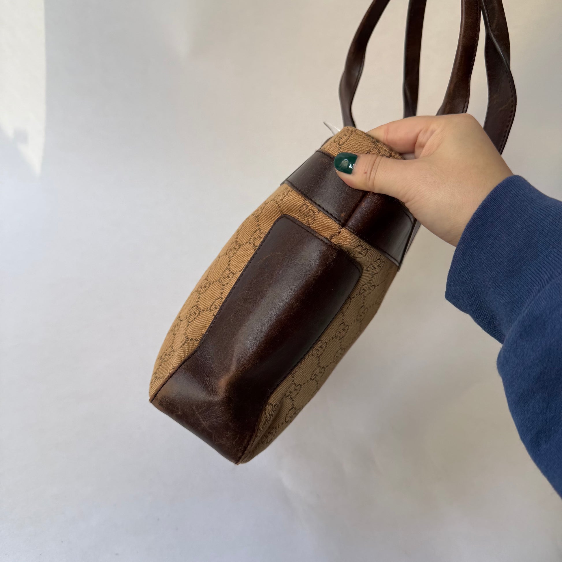 Gucci Brown Canvas & Leather Monogram Tote Bag