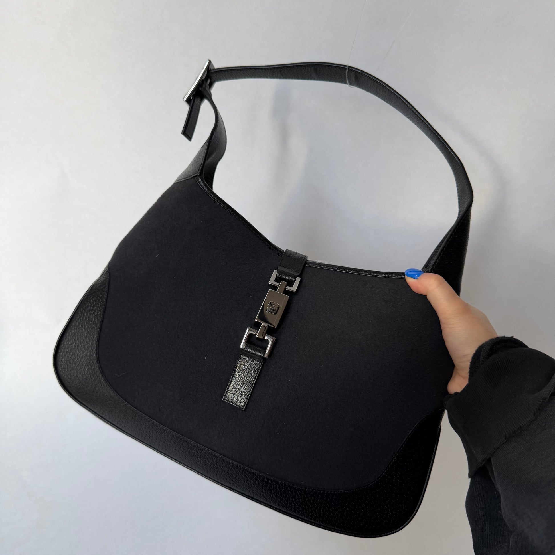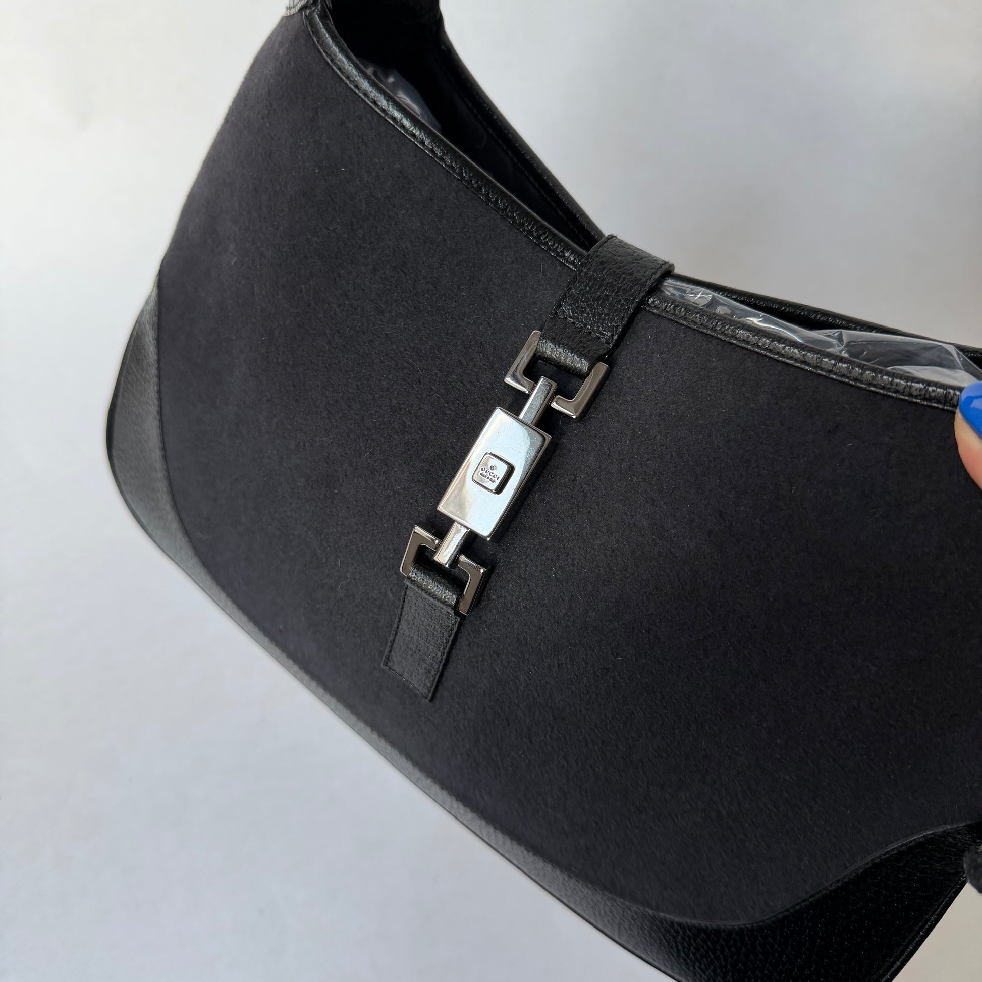 Gucci Black Wool Leather Jackie Shoulder Bag