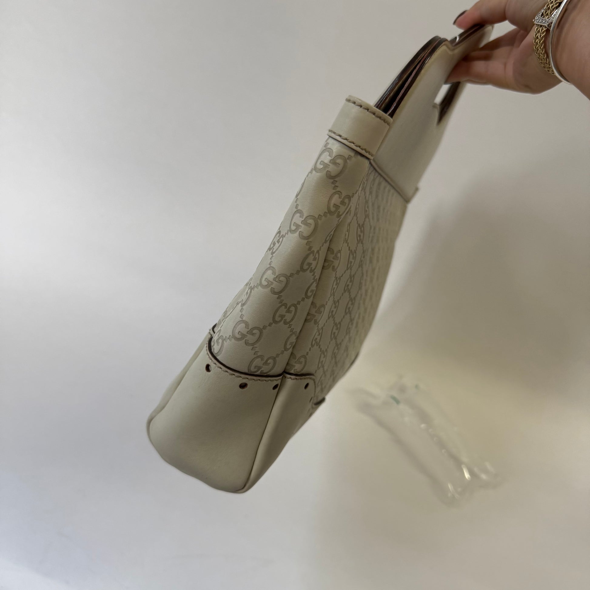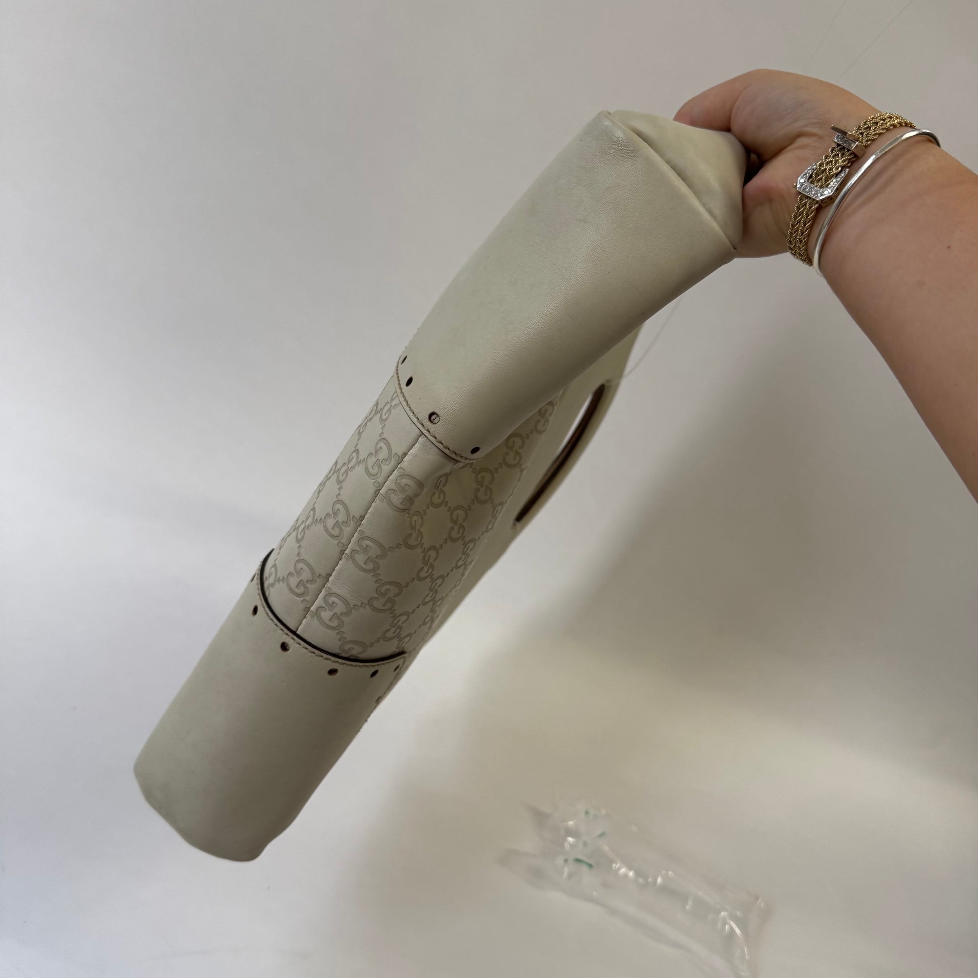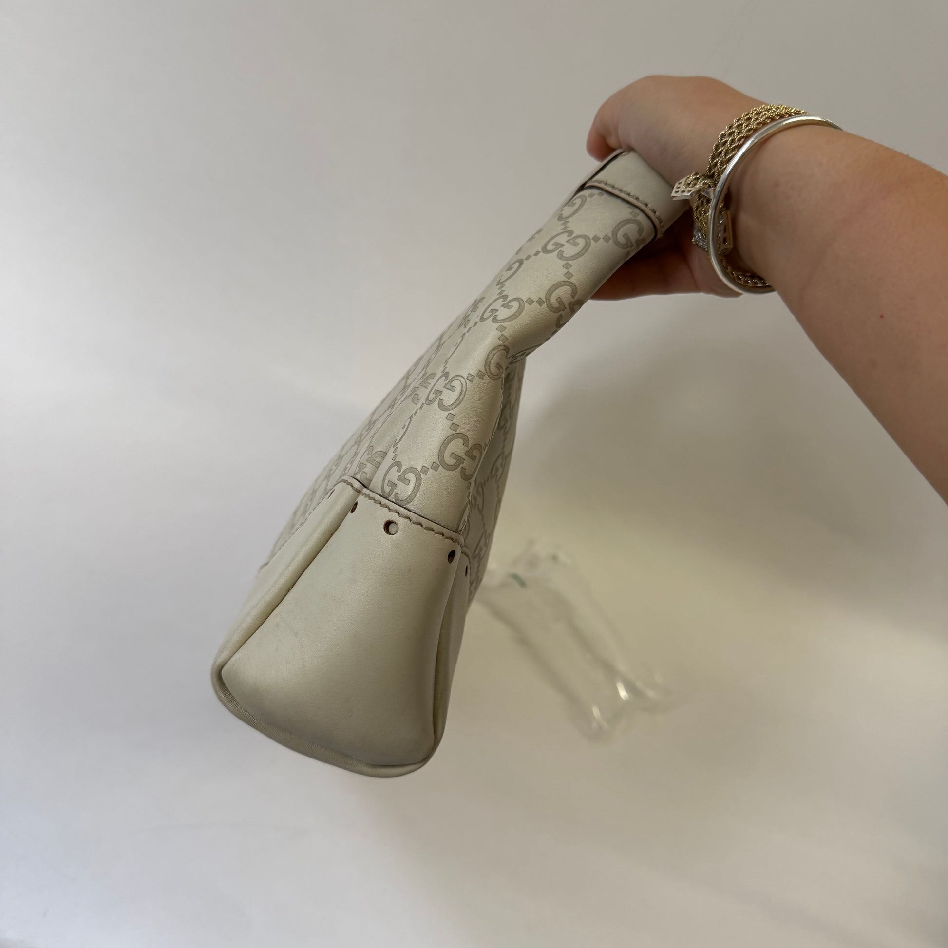 Gucci White Leather Monogram Guccissima Hobo Top Handle Bag