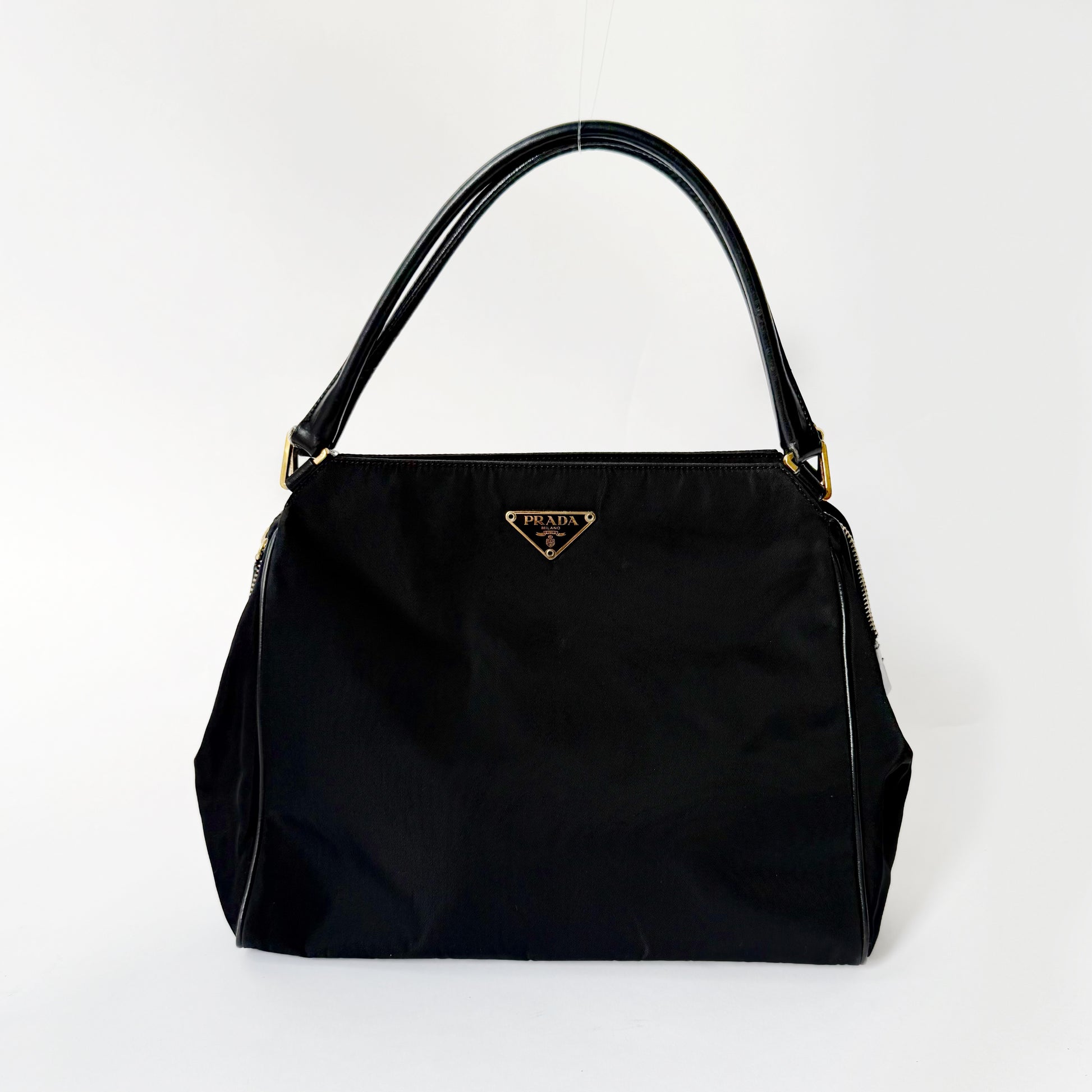 Prada Black Nylon Medium Shoulder Bag w/ Gold Hardware
